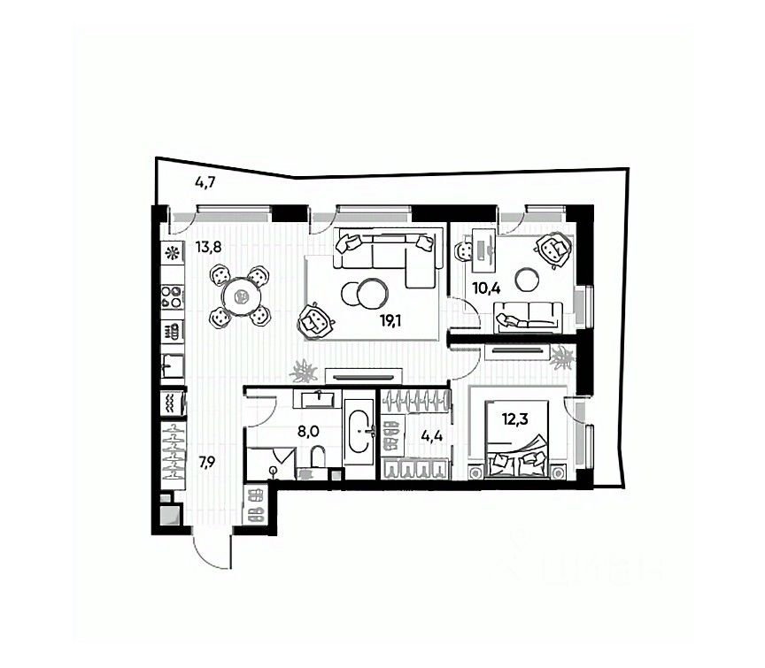 продам 3-к, Полковая, 134 100 000 ₽