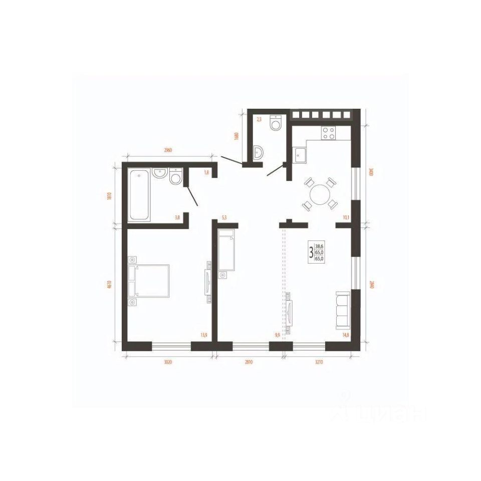 Общая площадь65 м2