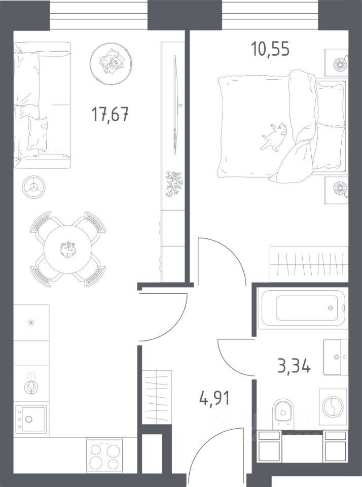 Общая площадь36,47 м2