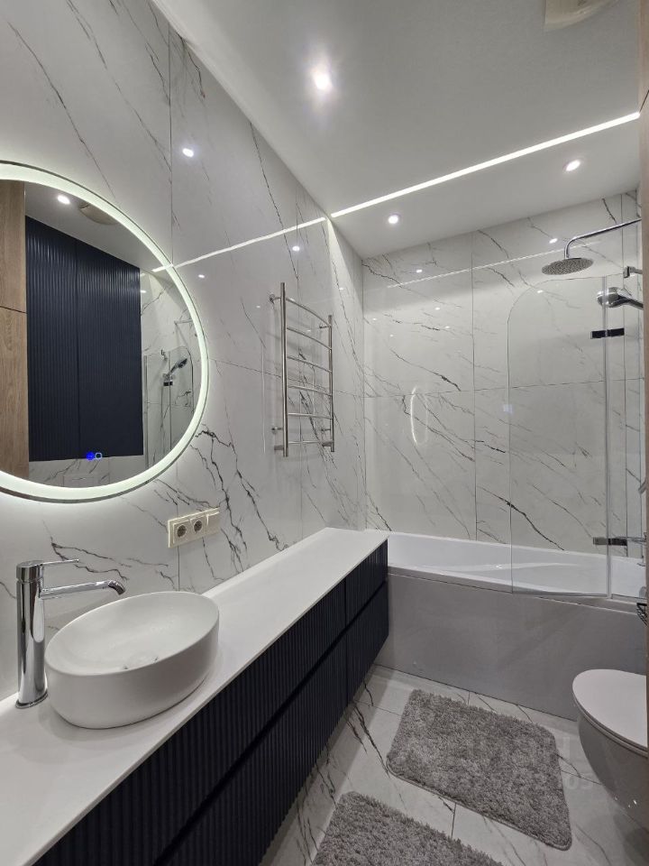 В ванной комнате, в шкафу расположена стиральная машина с сушкой.