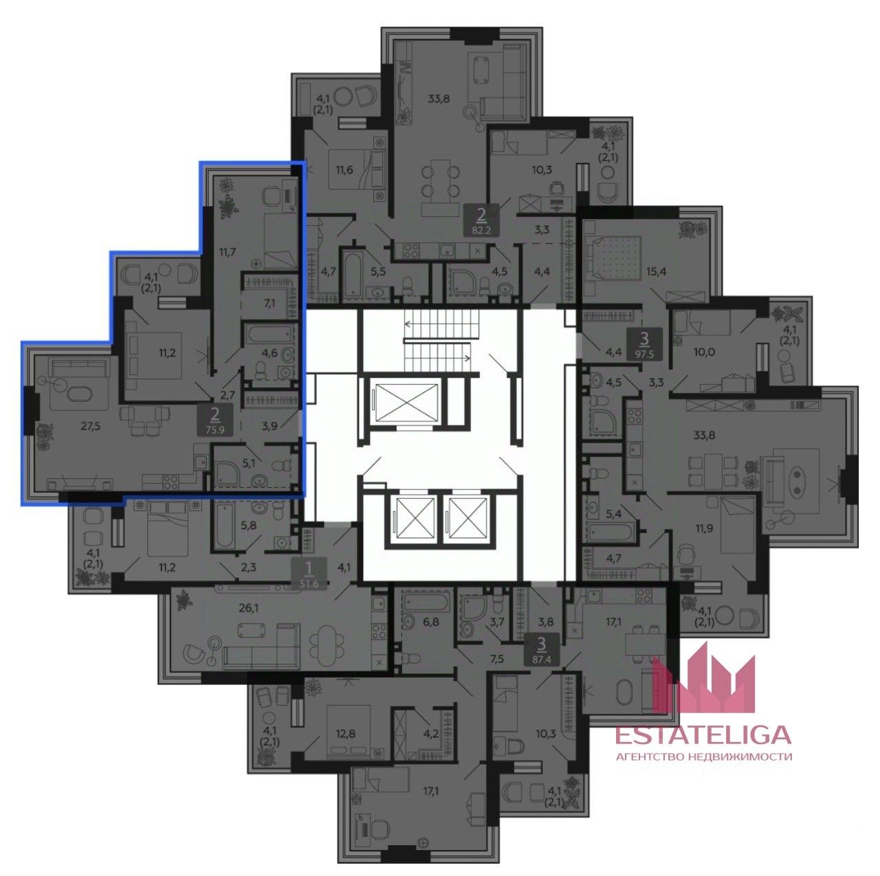 Id 59721. Эксклюзивная продажа! Уникальная квартира с видом, как на набережную так и на весь постепенно застраивающийся город в городе Shagal!