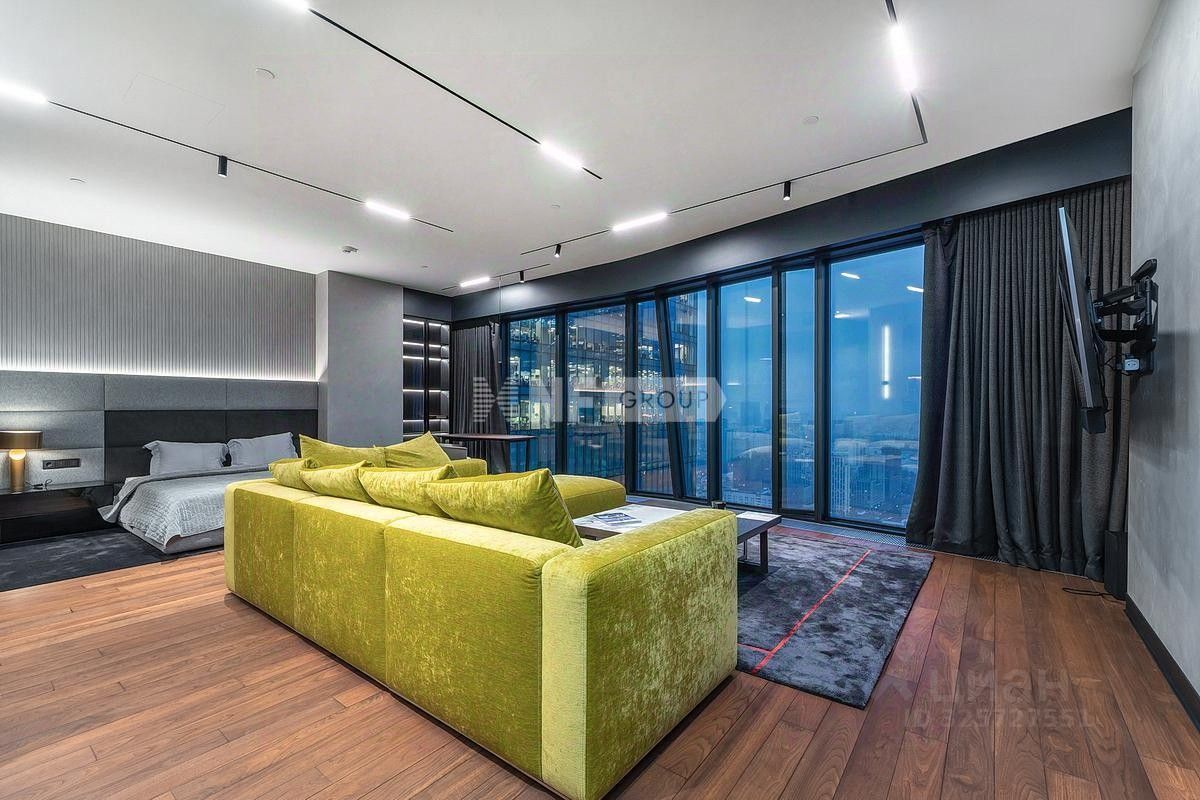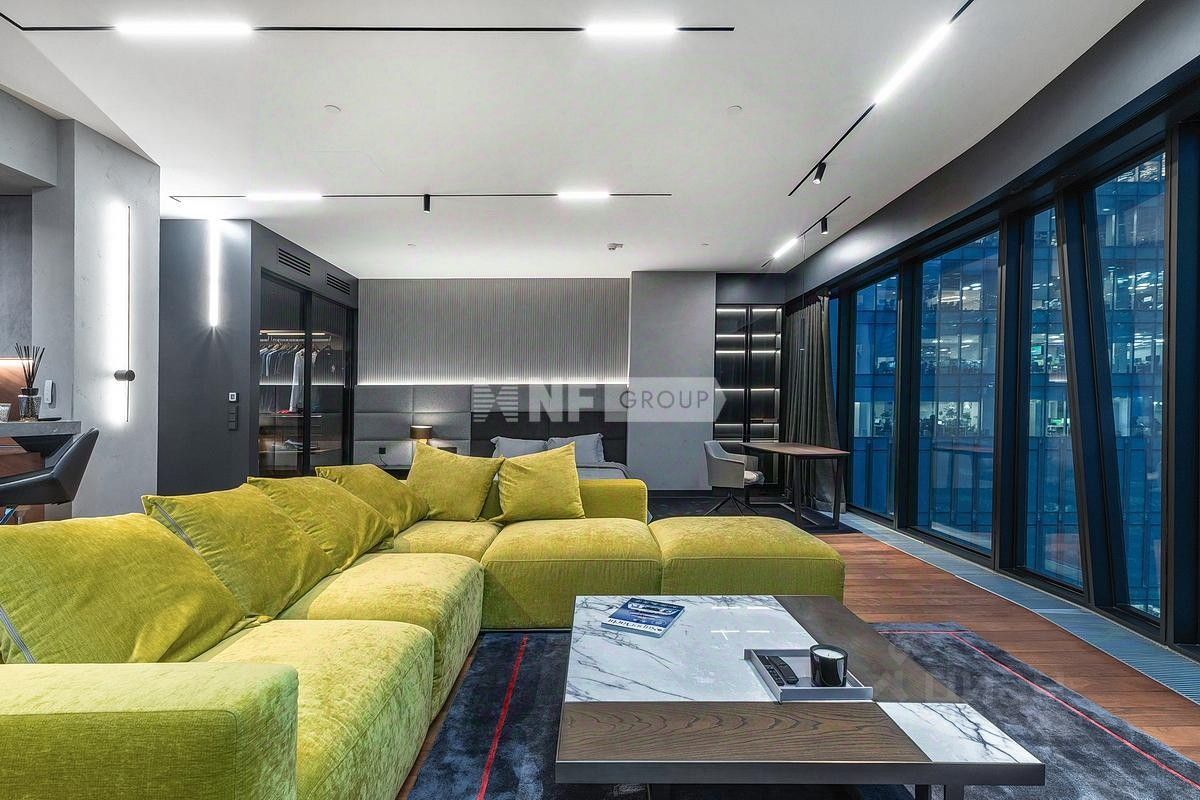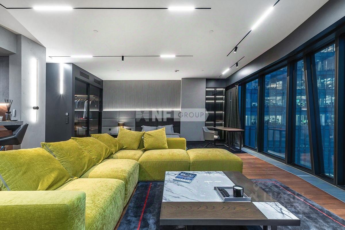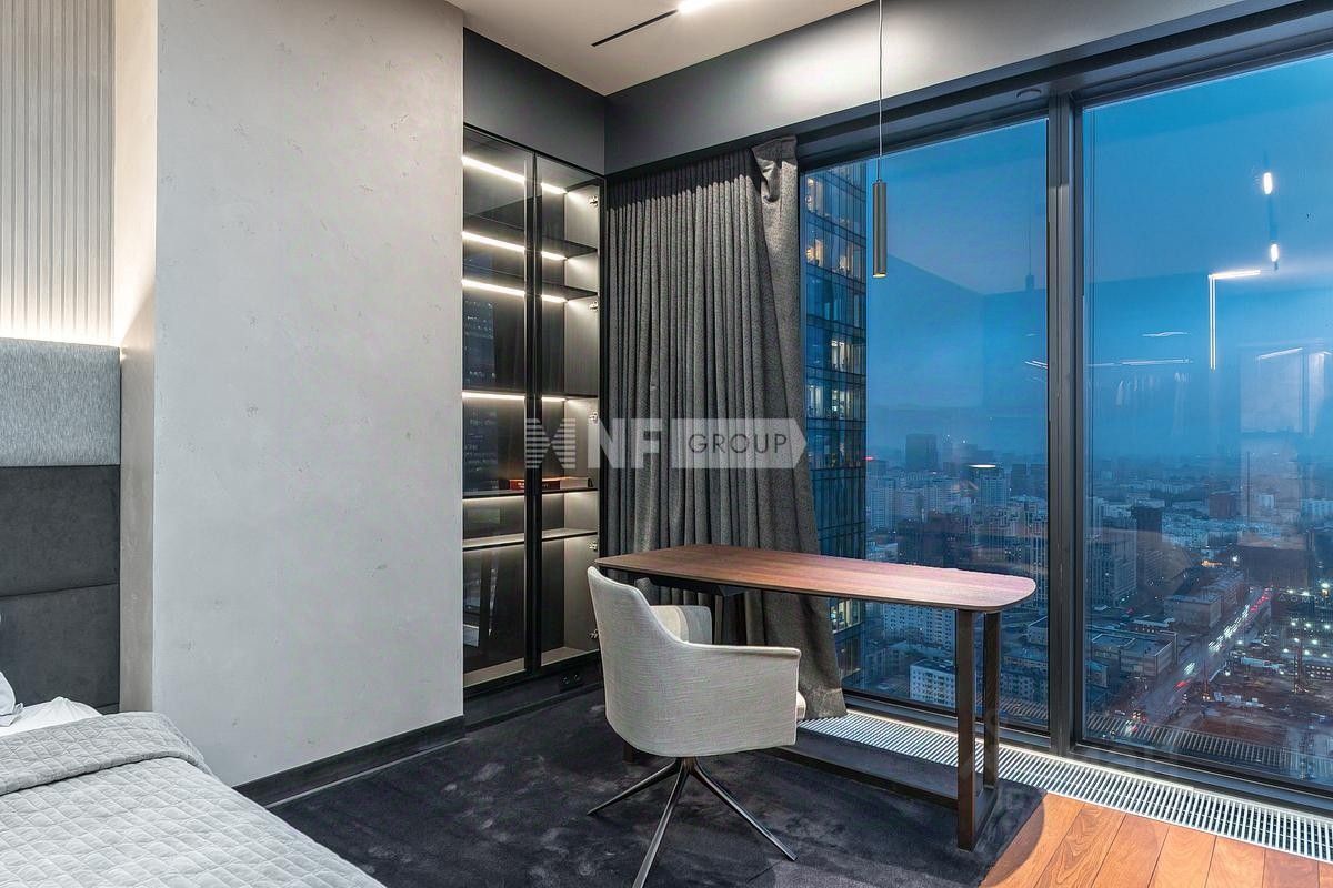 Лот: 101627. В продаже апартамент с дизайнерской отделкой в башне ''ОКО'' — одном из самых престижных небоскрёбов делового центра ''Москва-Сити''. Объект расположен на 35 этаже и полностью готов к заселению. Планировка: просторная студия с кухонной зоной, зона спальни, гардеробная и постирочная, два санузла. Интерьер выполнен в стиле современного городского люкса с чистыми линиями, архитектурным светом и панорамными окнами. В отделке использованы натуральный камень, алюминиевые рамы, шпон, декоративные панели и массив ореха. Установлена премиальная техника Kuppersbusch и Asko, встроенная вытяжка над островом, система увлажнения воздуха Bork. Мебель — Poliform: обеденная группа, диван, рабочее место и гардеробные системы из натуральных пород дерева. Высота потолков — 3,1 м. Окна выходят на северо-восток с видами на ''Сити'' и Пресню. На территории — фитнес-клуб Encore, рестораны, SPA, охрана, консьерж, подземный паркинг и скоростные лифты.