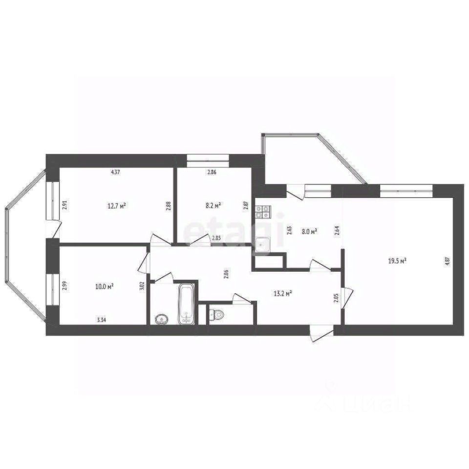 Высота потолка 2,8 м создает ощущение простора, а окна, выходящие на южную и западную стороны, обеспечивают квартиру естественным светом в течение всего дня. Дополнительным преимуществом является кладовая площадью 5 кв. м, которая может использоваться для хранения вещей или сезонных предметов.