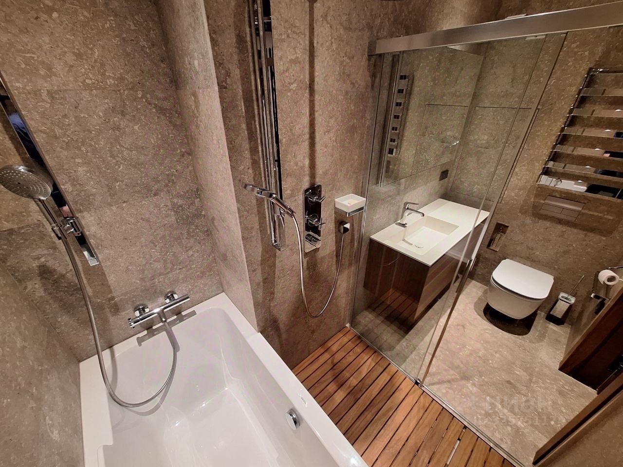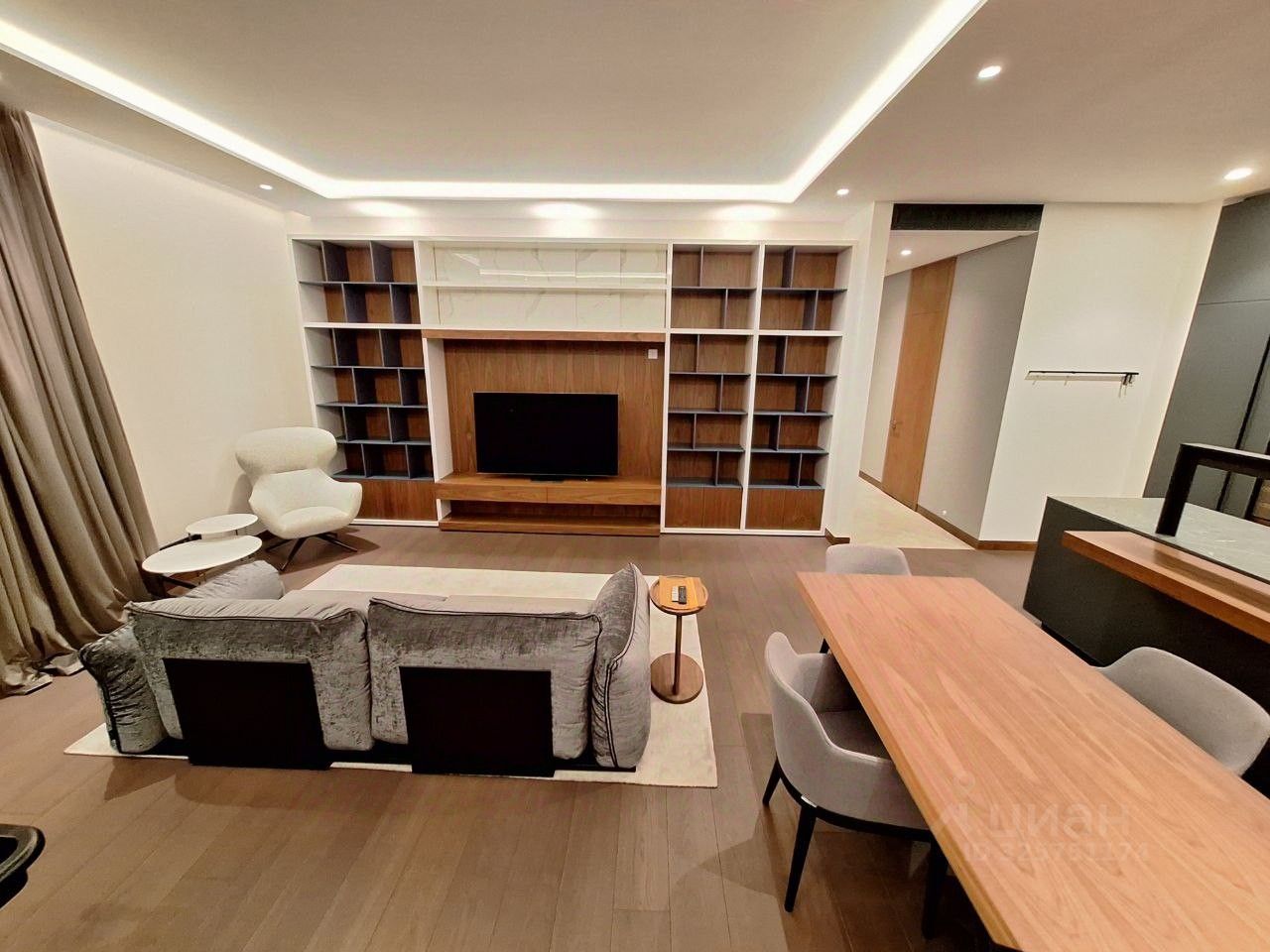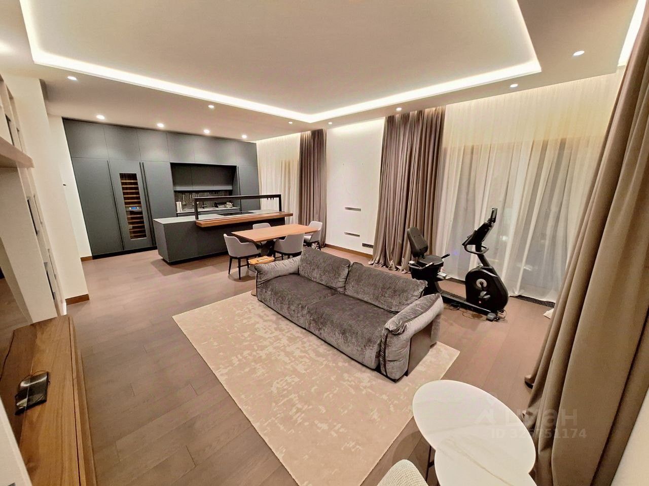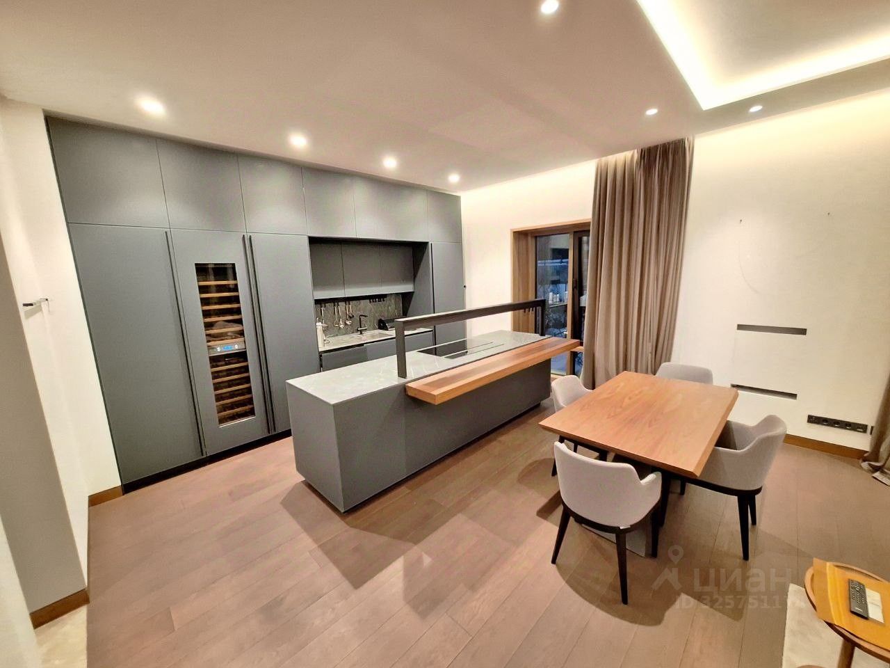 ЖК ''Вишневый сад'' В аренду предлагается прекрасная, светлая, уютная, большая квартира с ДИЗАЙНЕРСКИМ РЕМОНТОМ. Функциональная планировка: кухня-гостиная - мастер спальня со своим санузлом ( душевая ) - спальня или кабинет ( при необходимости кровать можем убрать ) - полноценный санузел с ванной и душевой - прачечная. Квартира полностью укомплектована современной мебелью и техникой от ведущих производителей. Панорамные окна в пол с видом во двор, очень тихо. Кондиционеры. Приточная система очистки воздуха. Подогрев полов. Вместительные шкафы, большое количество мест хранения. Качественная, дорогая сан техника. Кухонный гарнитур. Посудомоечная машина. Винный шкаф. Два холодильника. Морозильная камера. Стиральная и сушильная машина Miele. Система умный дом. Видео домофон.