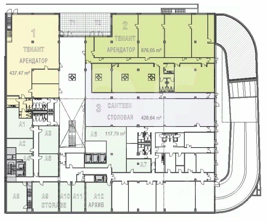 Этот лот состоит из нескольких помещений: 512 кв. м., 317 кв. м. и 575 кв. м.