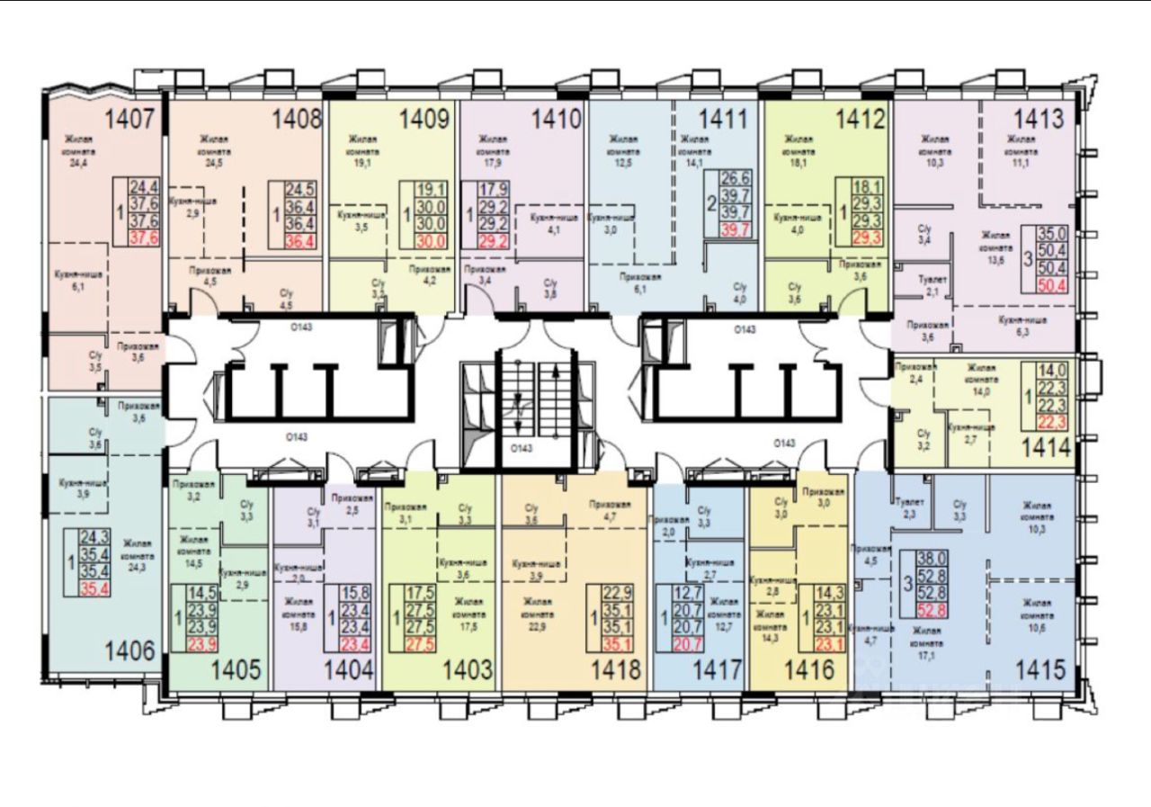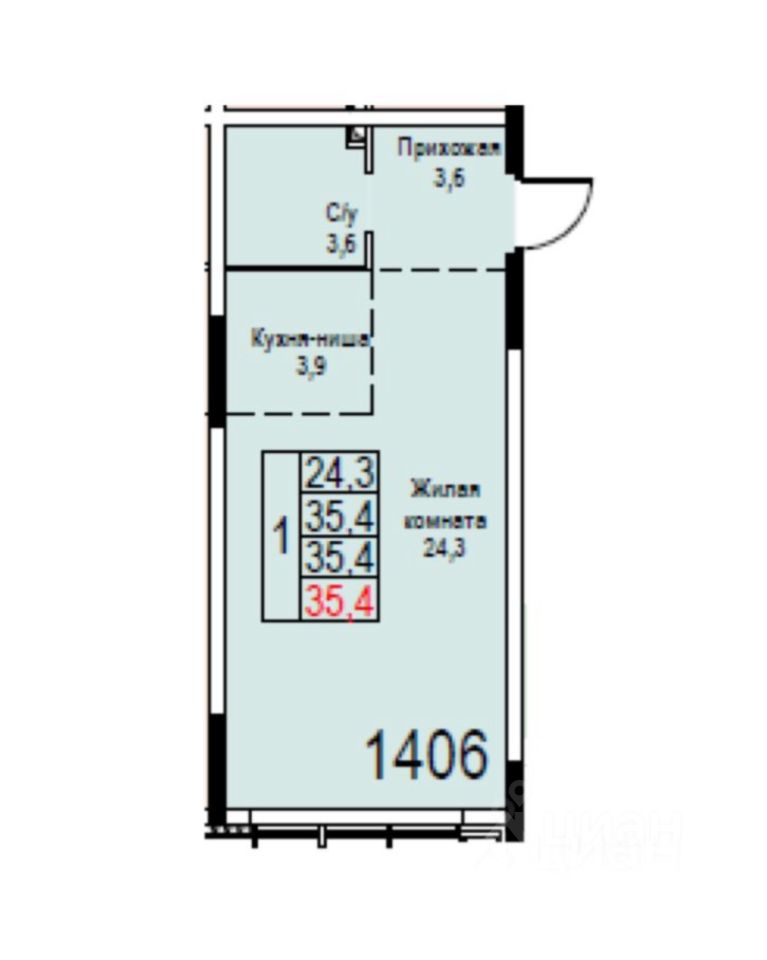 Апартаменты без отделки, расположенные в 7 секции, на 10ом этаже, С ВИДОМ ВО ДВОР, общей площадью 35,4 кв м.