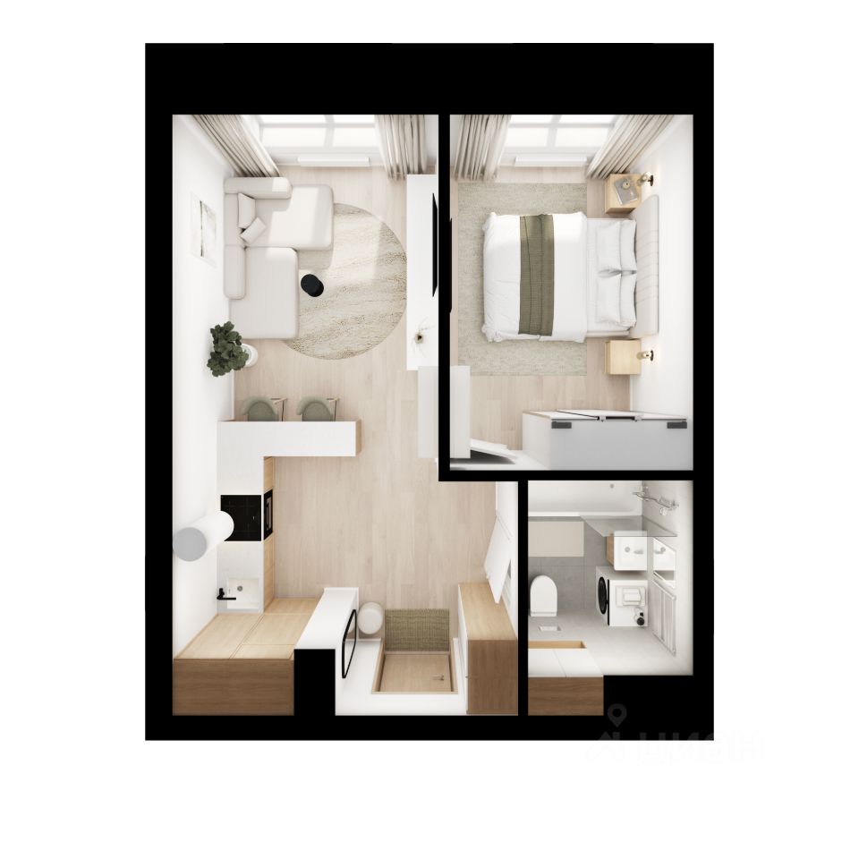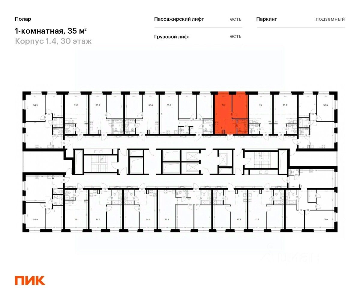 Продаётся 1-комн. квартира площадью 35 кв.м на 30 этаже 45 этажного дома (Корпус 1.4, Секция 1) проекта ПИК Полар. Светлый просторный подъезд на уровне земли, функциональная планировка, большие окна, c отделкой.