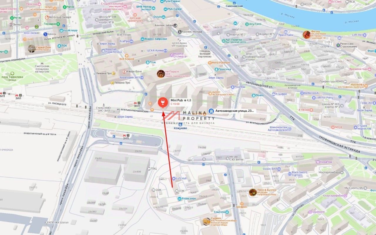 ЖК ''Парк Легенд'' комфорт класса, помещение расположено в 50 метрах от выхода из метро ЗИЛ. Даниловский район, в комплексе 6 корпусов по 26 этажей около 2500 тыс жителей, рядом с комплексом территория ЖК ''Зиларт'' с большим количеством проживающих. Так же в 150 метрах от помещения находится Леруа Мерлен, Центр Синхронного плавания, ЦСКА Арена, Декатлон. Высокий пешеходный и автомобильный трафик.