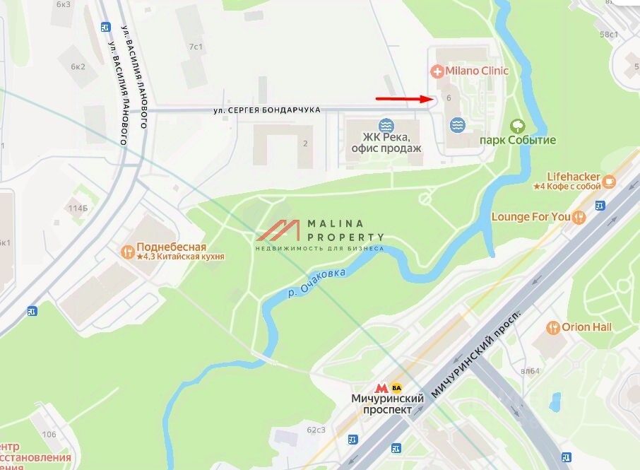 Помещение находится в жилом комплексе, комплекс сдан в 2021 году и уже заселен. ЖК Река расположен в районе Раменки с хорошей инфраструктурой, благоприятной экологией, в 200 метрах от станции метро Мичуринский проспект, в начале парка Событие. Комплекс уже заселен.