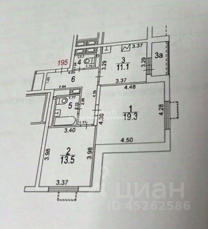 - Площадь: 59,2 м² - Жилая площадь: 32,8 м² - Площадь кухни: 11,1 м² - Количество комнат: 2 изолированные спальни — 19,3 м² и 13,5 м² - Санузлы: 2 раздельных (общей площадью 6,2 м²) - Этаж: 8 из 19 - Высота потолков: 2,7 м - Вид из окон: на улицу - Балкон и лоджия: оба с площадью 1,4 м² - Грузовой лифт: есть - Год постройки дома: 2022 год