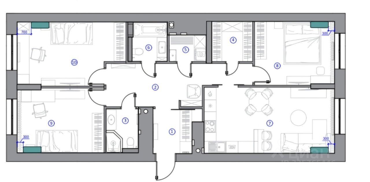 Видовая квартира расположена на 12 этаже. Три отдельные спальни, кухня-гостиная, два полноценных санузла, гардеробная комната, постирочная комната, комплектация всей необходимой мебелью и техникой - сделают вашу жизнь комфортной!
