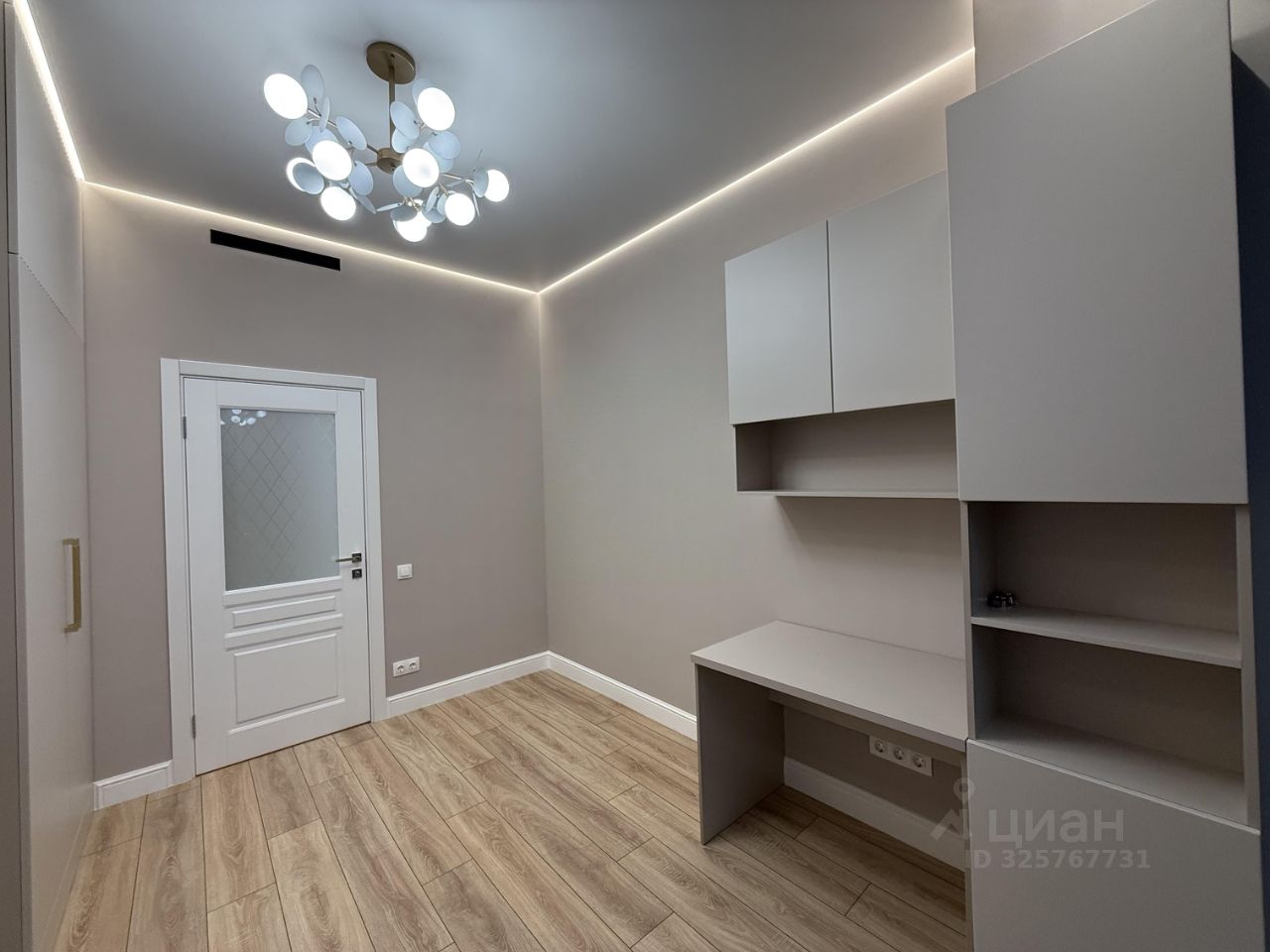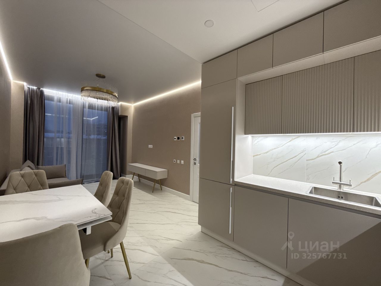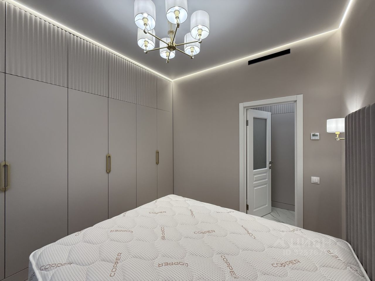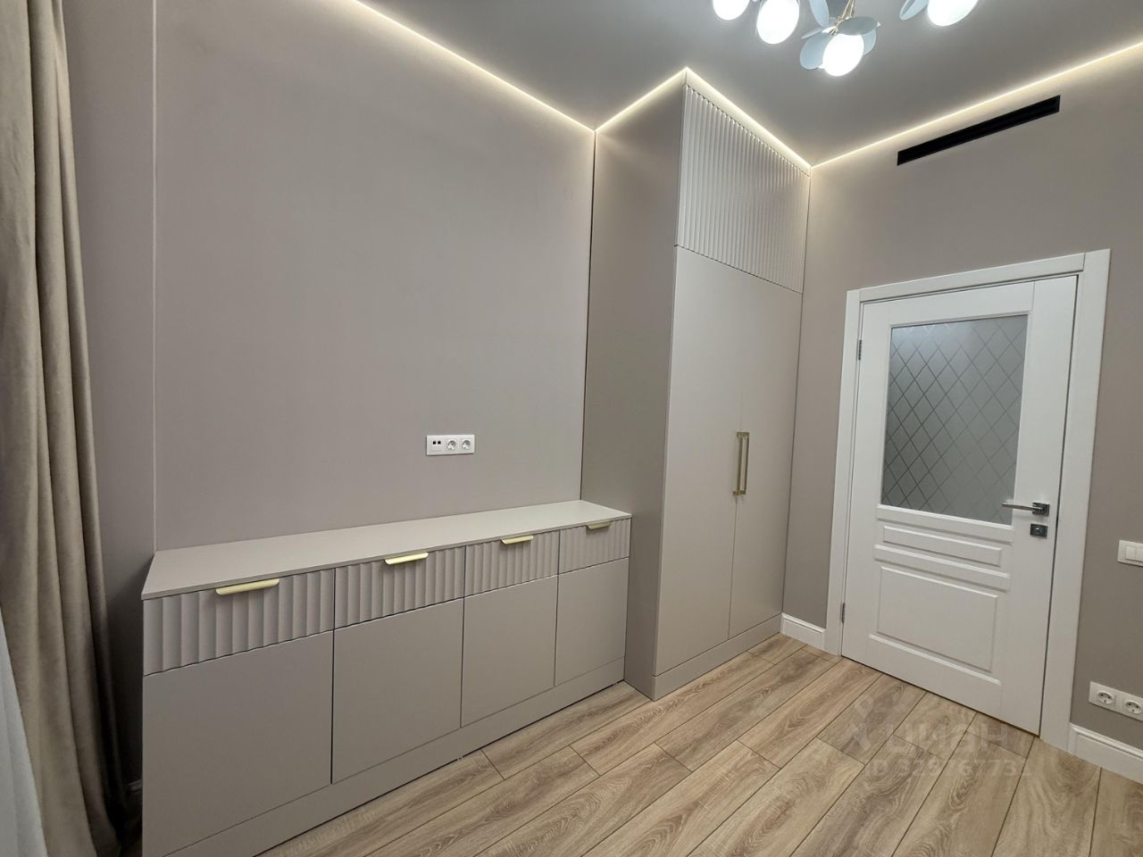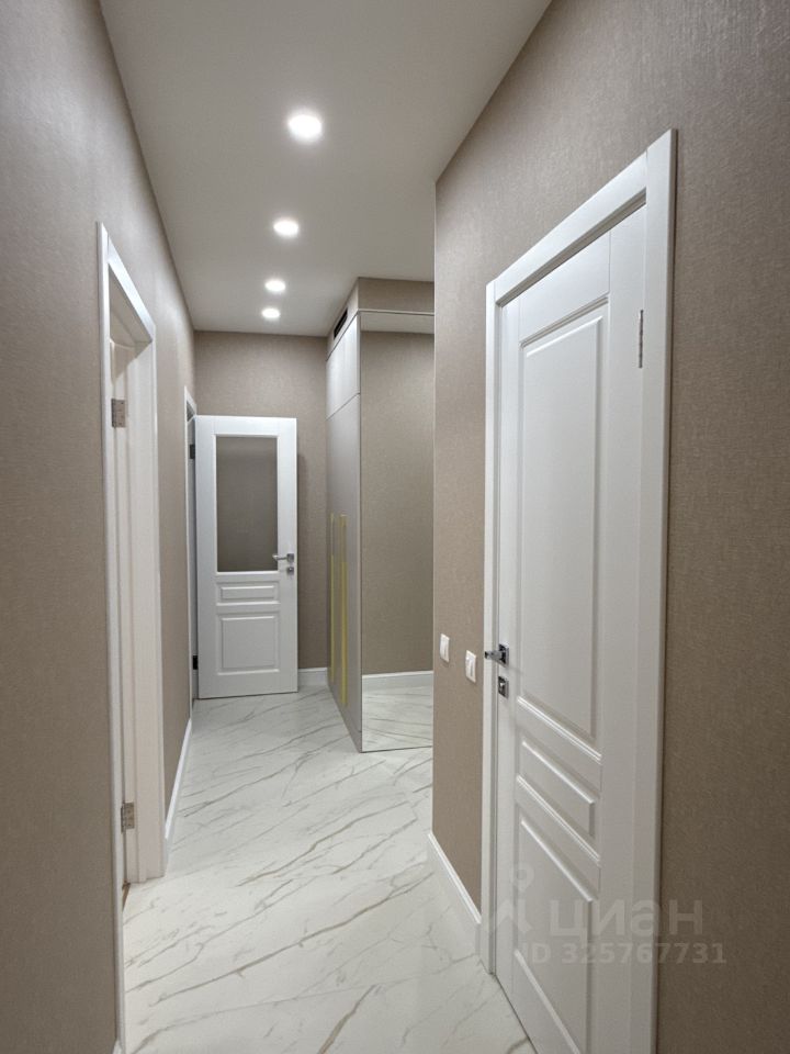 В квартире ремонт выполнен в светлых спокойных тонах, атмосфера гармонии и уюта. Освещение по всей квартире в нескольких режимах, парящий потолок с подсветкой , теплый пол. Высокие потолки 2,85 метра.