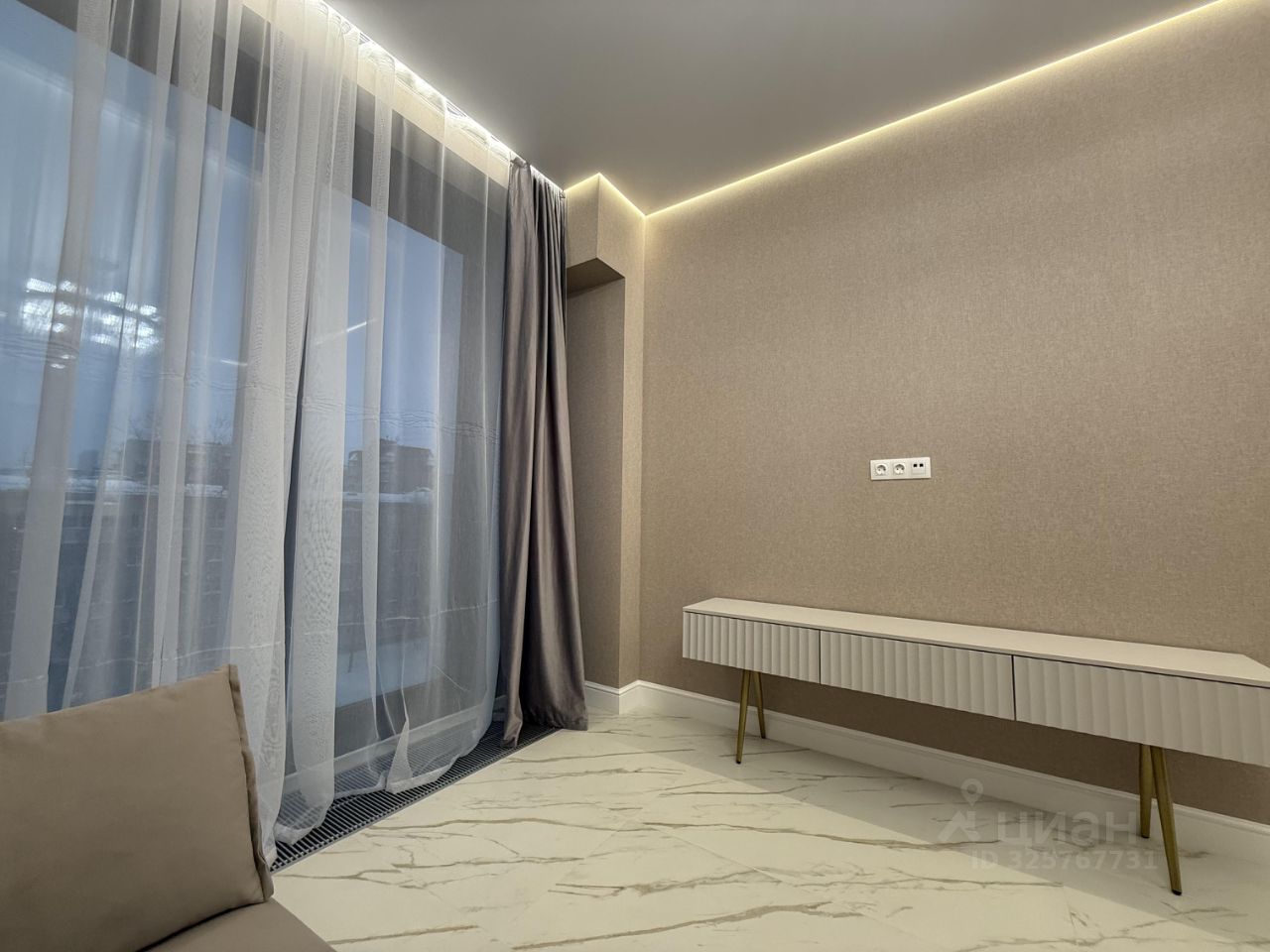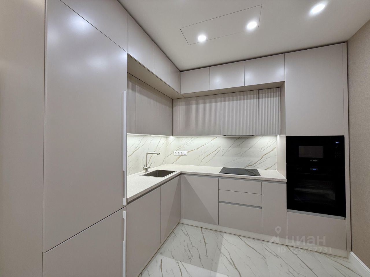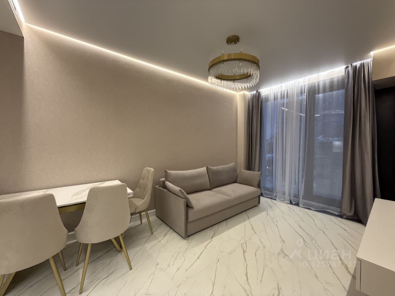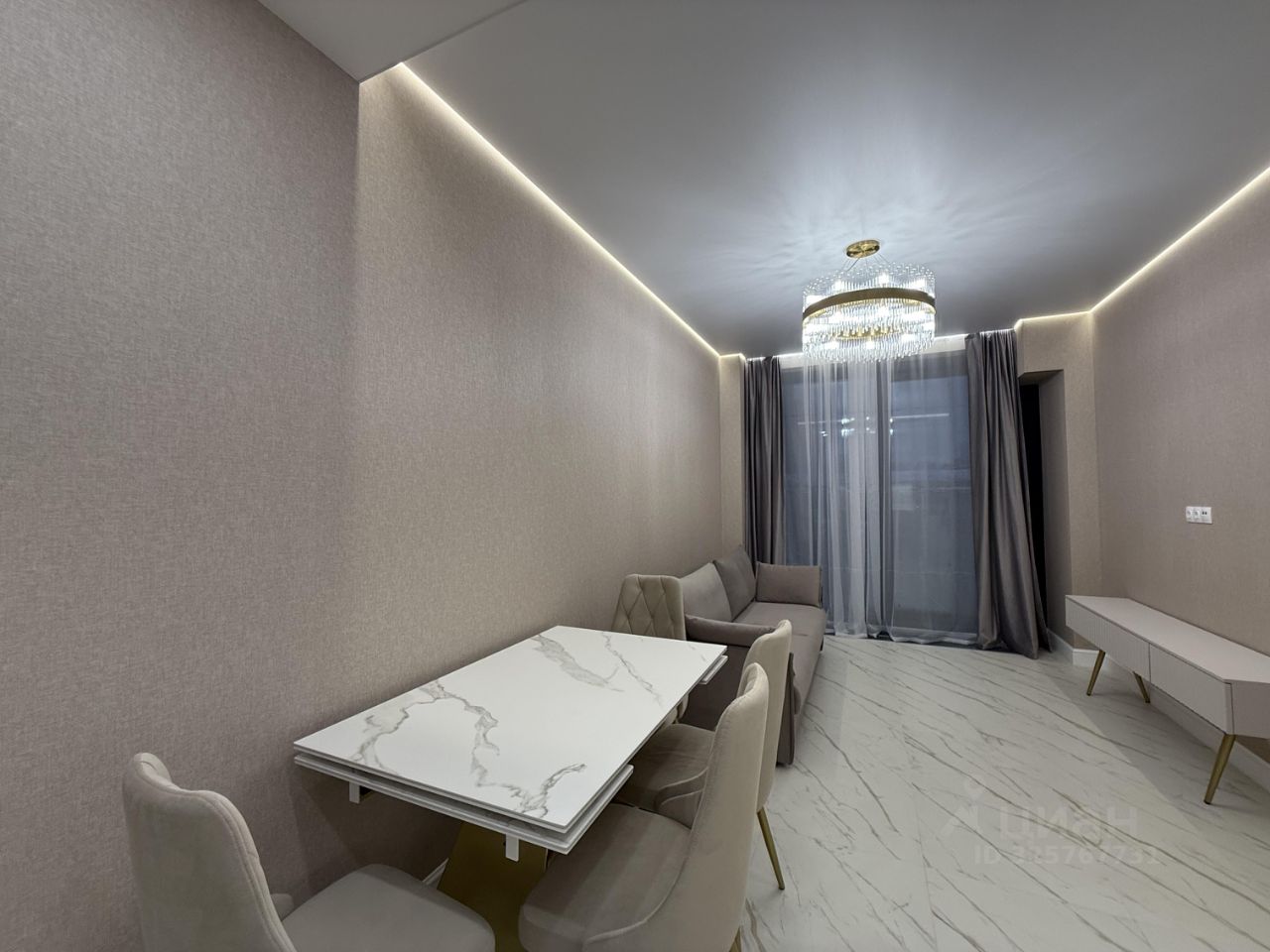 В квартире ремонт выполнен в светлых спокойных тонах, атмосфера гармонии и уюта. Освещение по всей квартире в нескольких режимах, парящий потолок с подсветкой , теплый пол. Высокие потолки 2,85 метра.