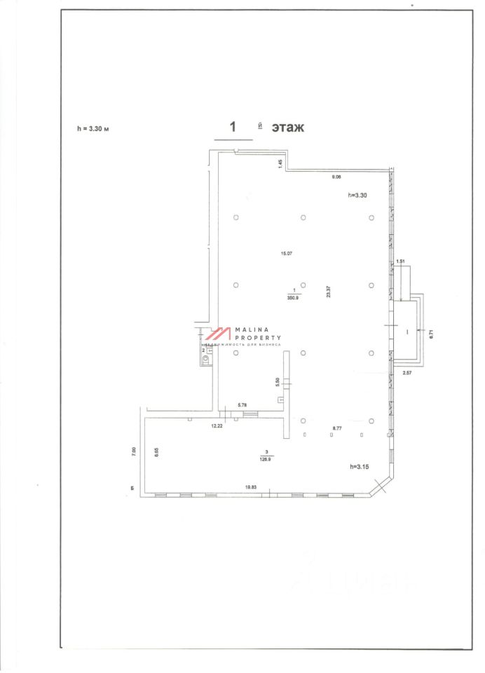 Помещение 479,3 м2, располагается на 1 этаже пристройки к дому, зальная планировка, 2 отдельных входа с фасада, высота потолка 3,3 м, витринные окна по фасаду. Электрическая мощность 100 кВт. Парковка перед фасадом. Место для размещения рекламы.