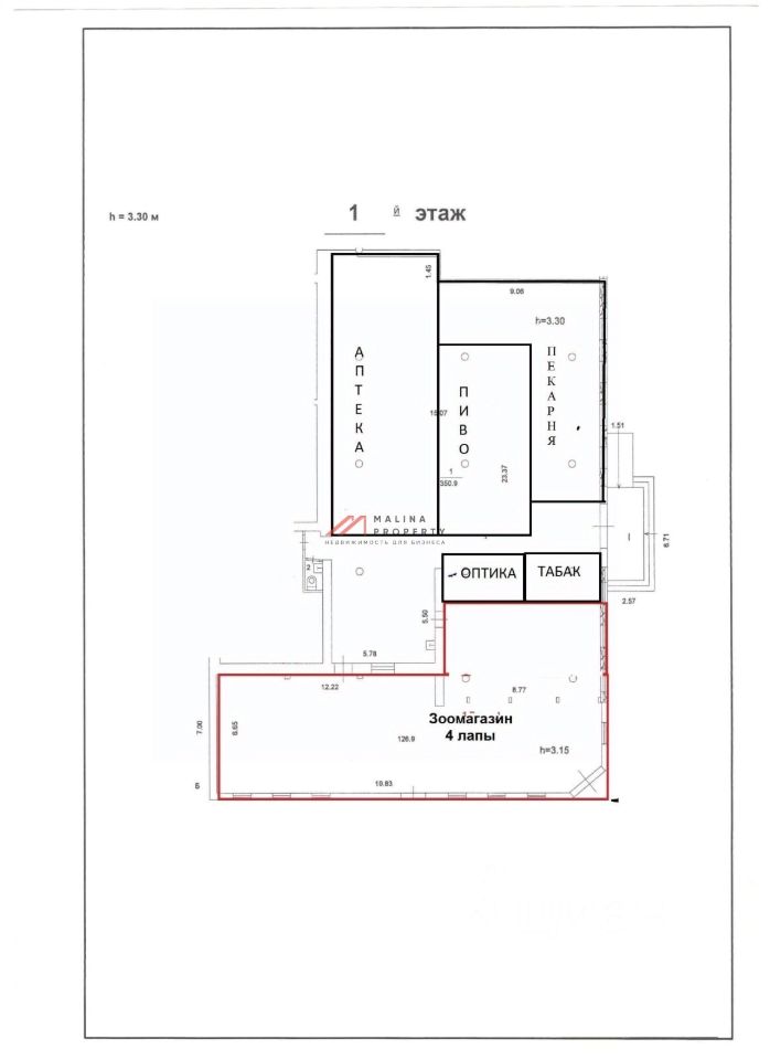 Арендатор: магазин оптики, аптека, разливное пиво ''Хмель и Солод'', табак, зоомагазин ''Четыре лапы'', пекарня. Общая месячная арендная плата 1 618 350 рублей.