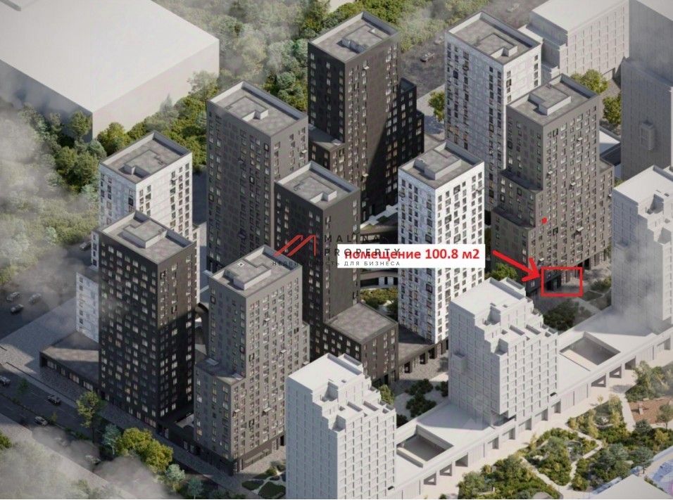 Помещение общей площадью 100,8 м2, расположено на 1 этаже, свободная планировка. Высота потолка 7 метров, электросеть 20 кВт. Помещение расположено в центре жилого массива. Панорамное остекление.