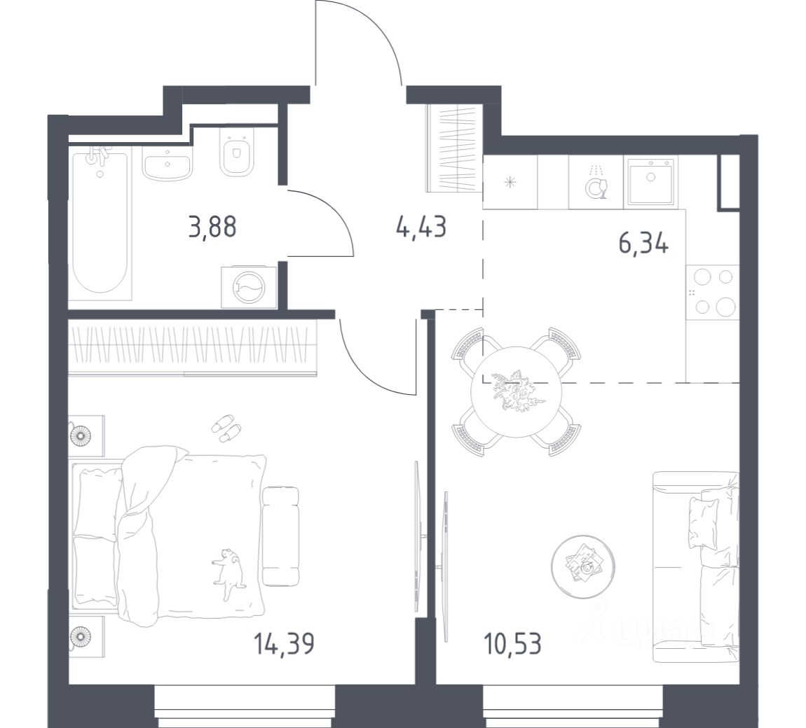 Строим кварталы для жизни с заботой о будущем. Предлагается 1-комнатная квартира комфорт-класса площадью 39,57 кв.м в корпусе 1 на 3-м этаже, в жилом комплексе ''Квартал Домашний''.