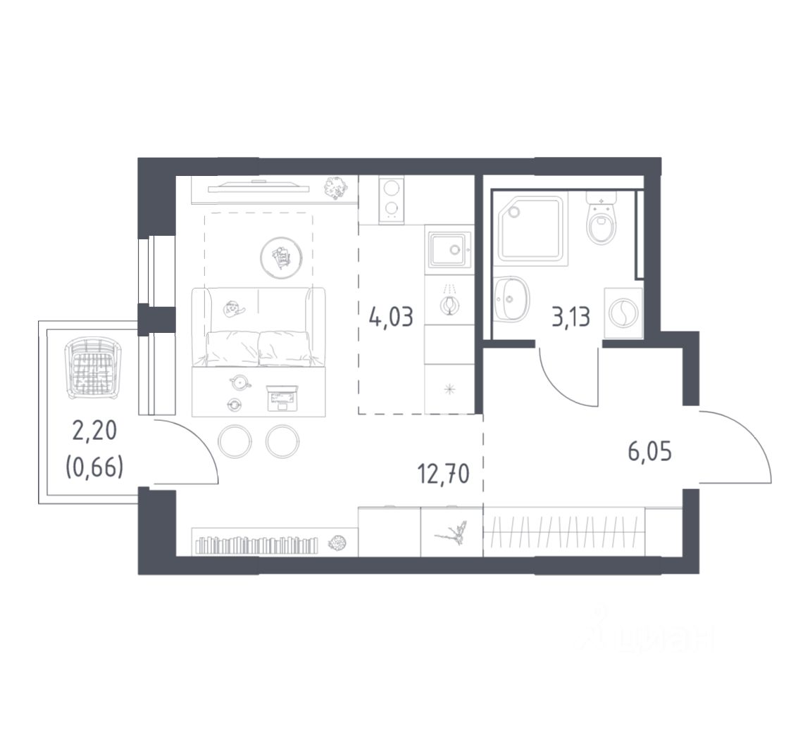 Общая площадь26,57 м2