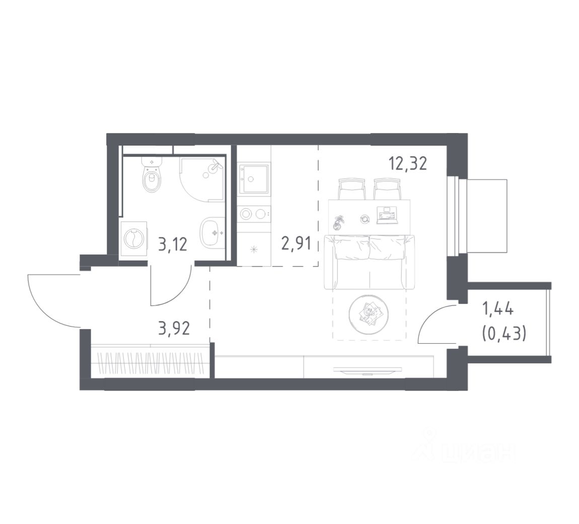 Жилая площадь12,3 м2