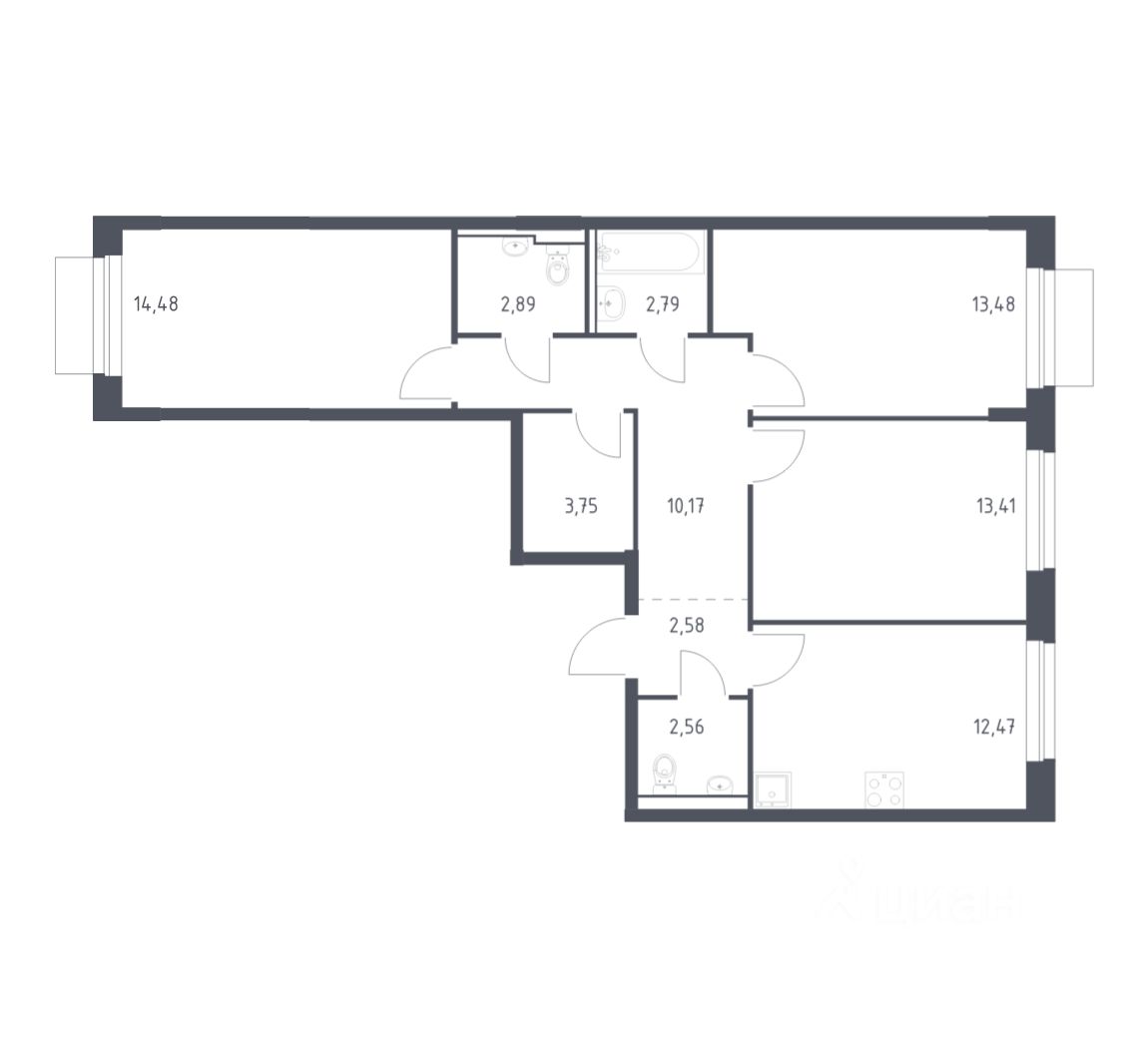 Строим кварталы для жизни с заботой о будущем. Предлагается 3-комнатная квартира комфорт-класса площадью 78,58 кв.м в корпусе 30 на 5-м этаже, в жилом комплексе ''Новое Внуково''.