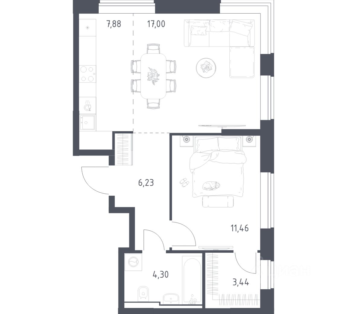 Строим кварталы для жизни с заботой о будущем. Предлагается 1-комнатная квартира комфорт-класса площадью 50,31 кв.м в корпусе 1 на 4-м этаже, в жилом комплексе ''Квартал Домашний''.