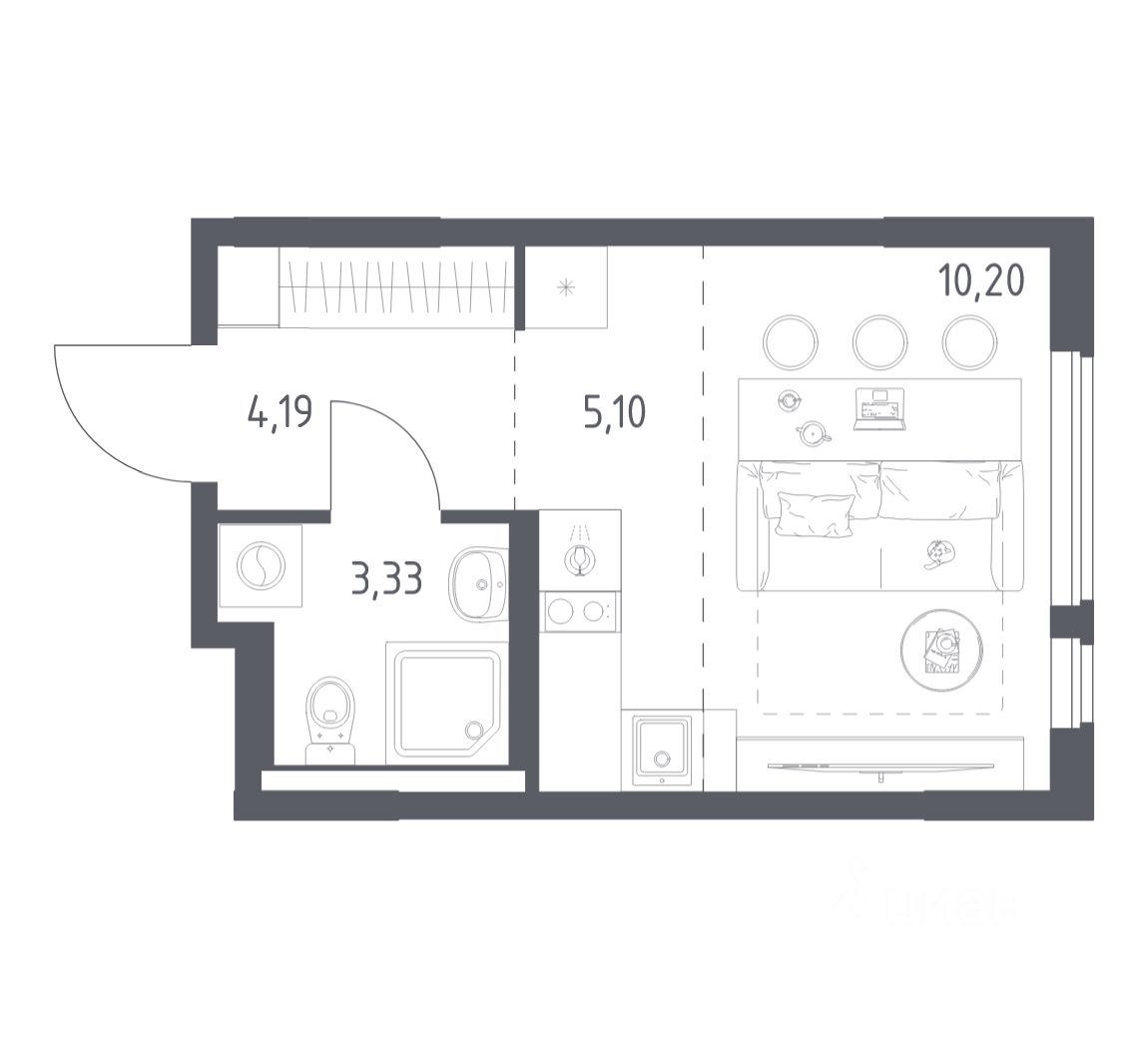 Общая площадь22,82 м2