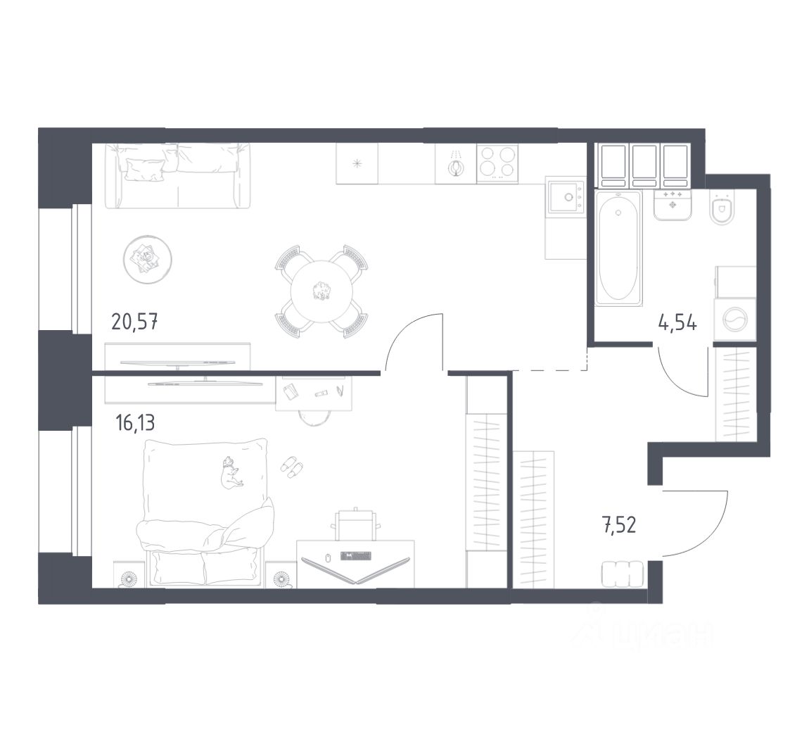 Строим кварталы для жизни с заботой о будущем. Предлагаются 1-комнатные апартаменты бизнес-класса площадью 48,76 кв.м в корпусе 2.2 на 23-м этаже, в жилом комплексе ''Тропарево Парк''.