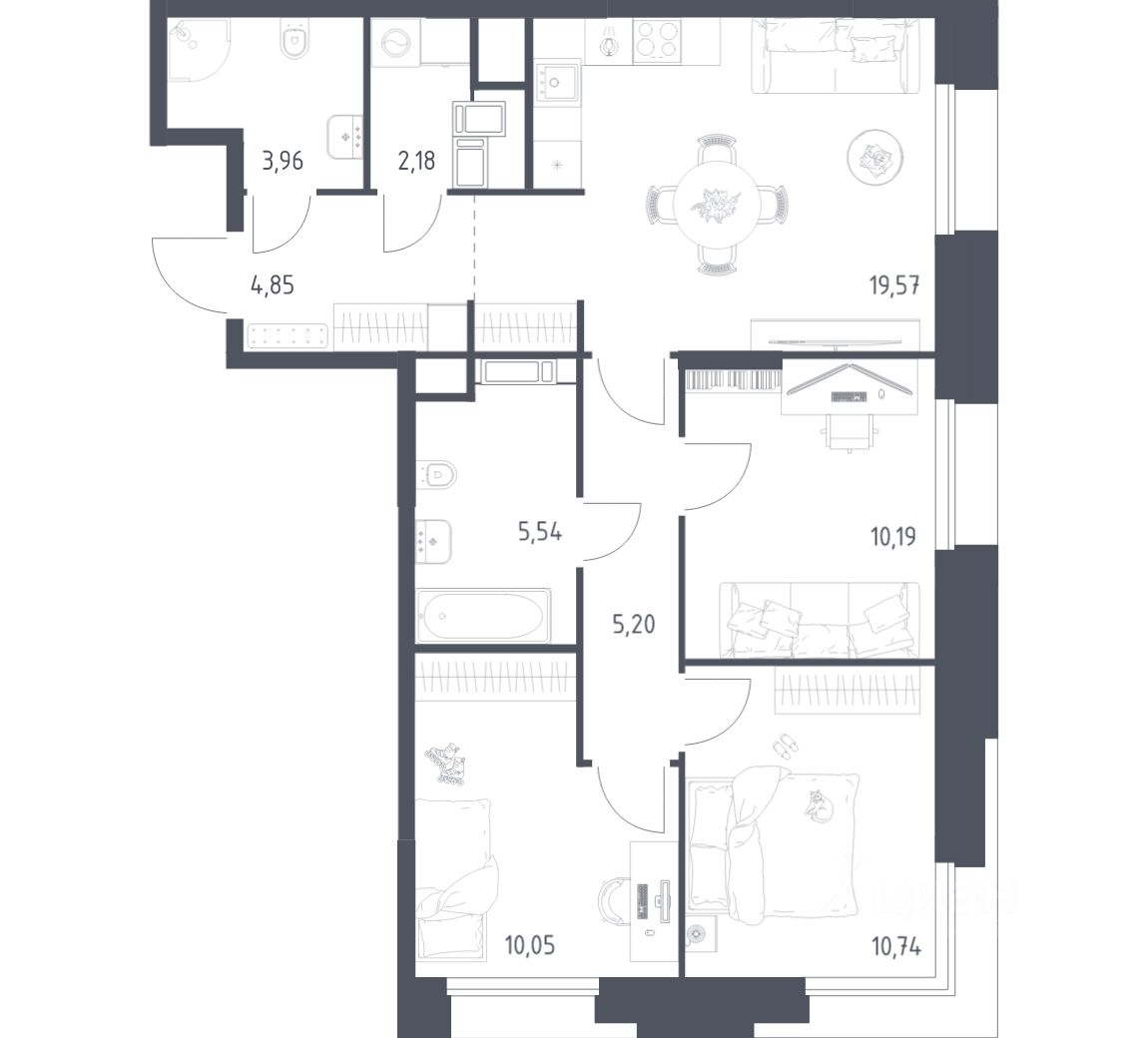 Строим кварталы для жизни с заботой о будущем. Предлагаются 3-комнатные апартаменты бизнес-класса площадью 72,28 кв.м в корпусе 2.2 на 9-м этаже, в жилом комплексе ''Тропарево Парк''.