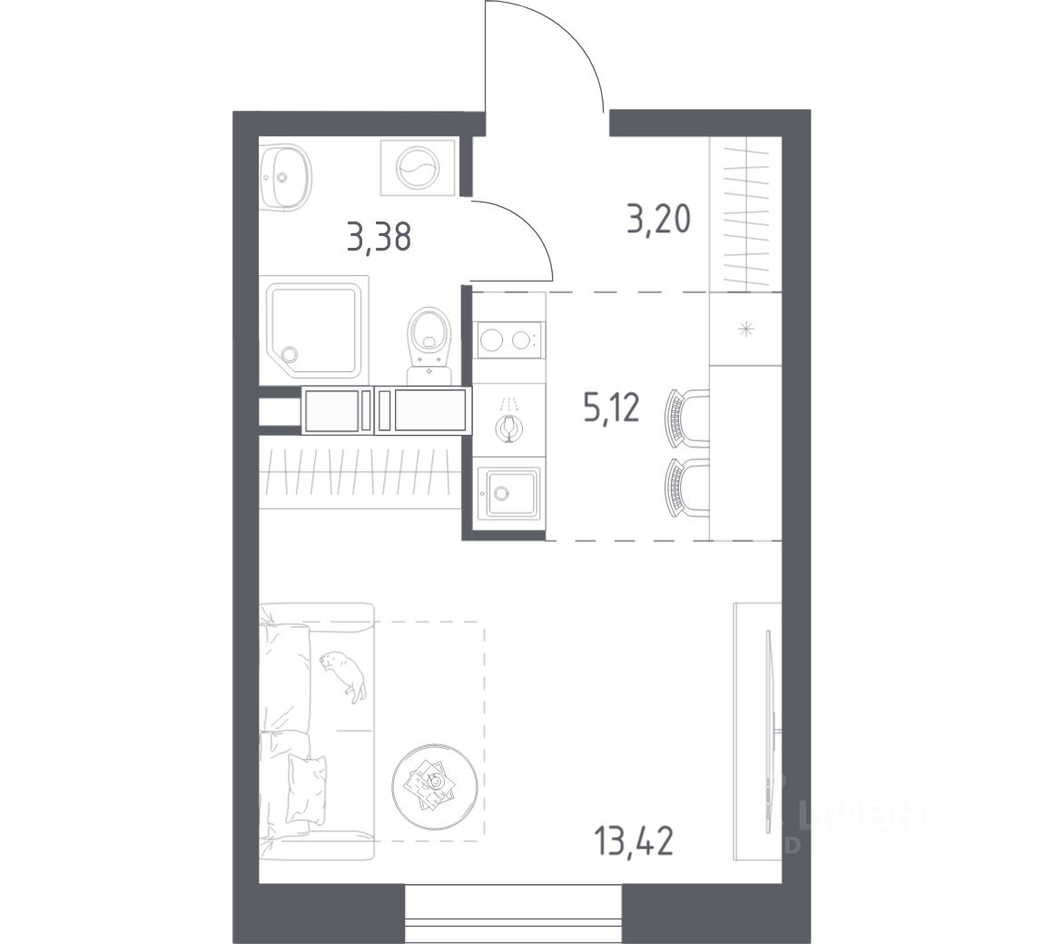 Строим кварталы для жизни с заботой о будущем. Предлагается студия комфорт-класса площадью 25,12 кв.м в корпусе 12 на 7-м этаже, в жилом комплексе ''Цветочные Поляны''.