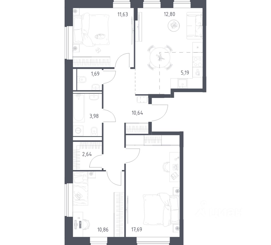 Строим кварталы для жизни с заботой о будущем. Предлагается 3-комнатная квартира комфорт-класса площадью 77,12 кв.м в корпусе 1 на 7-м этаже, в жилом комплексе ''Квартал Домашний''.