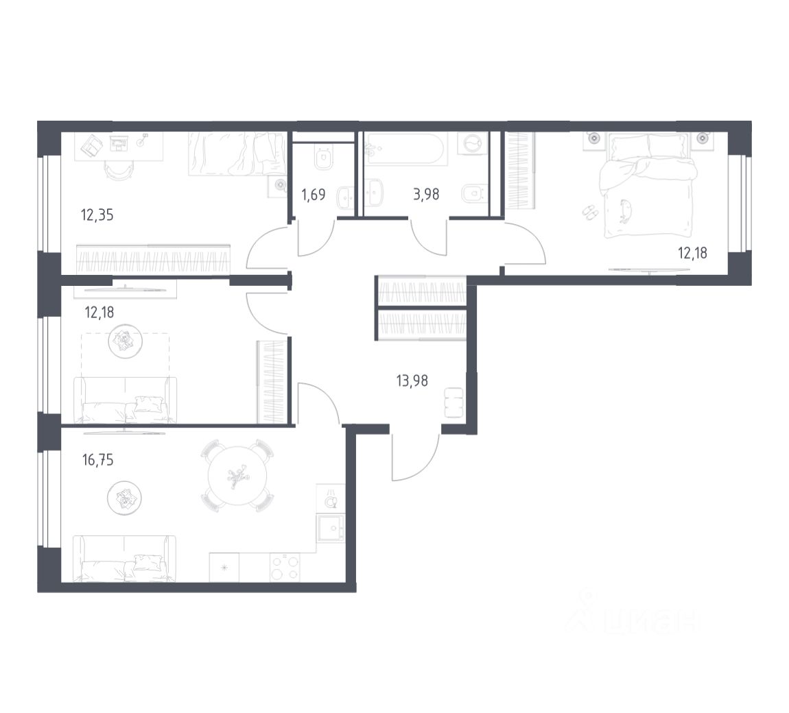 Строим кварталы для жизни с заботой о будущем. Предлагается 3-комнатная квартира комфорт-класса площадью 73,11 кв.м в корпусе 1 на 7-м этаже, в жилом комплексе ''Квартал Домашний''.