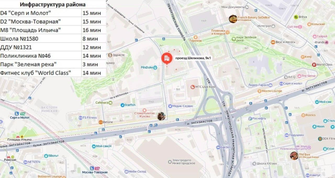 Динамично развивающийся район Москвы с современной застройкой, прекрасной транспортной доступностью и всей необходимой для жизни инфраструктурой: станции метро и МЦД, магазины, торговые центры, школы, поликлиники — все находится в пешей доступности. Закрытый двор с детской и спортивной площадками, а также стильным благоустройством. Прекрасная локация для автомобилистов — добраться до Садового кольца в будний день можно всего за 10-15 минут на машине или на общественном транспорте.