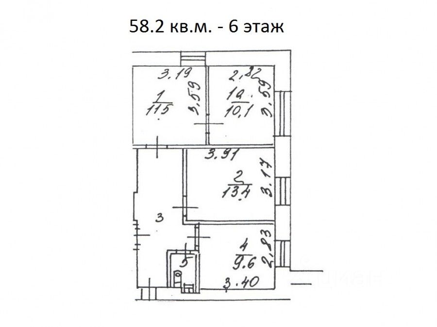 6 этаж. Планировка кабинетная. 3 кабинета (11,5, 10,1 и 13,4 кв.м.), кухня (9,6 кв.м.) использовали как кабинет, с/у в блоке. Помещение за выездом арендатора. Высота потолков 3 метра. Эксплуатационные расходы включены. Коммунальные услуги включены, кроме электроэнергии. Электроэнергия оплачивается по факту потребления.