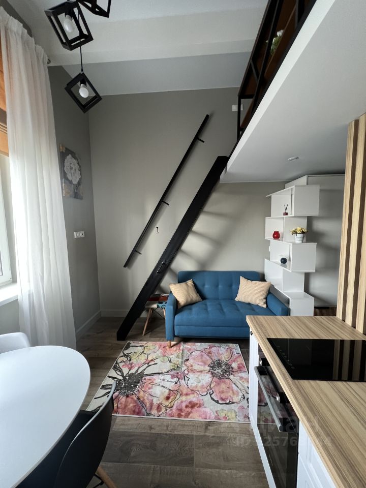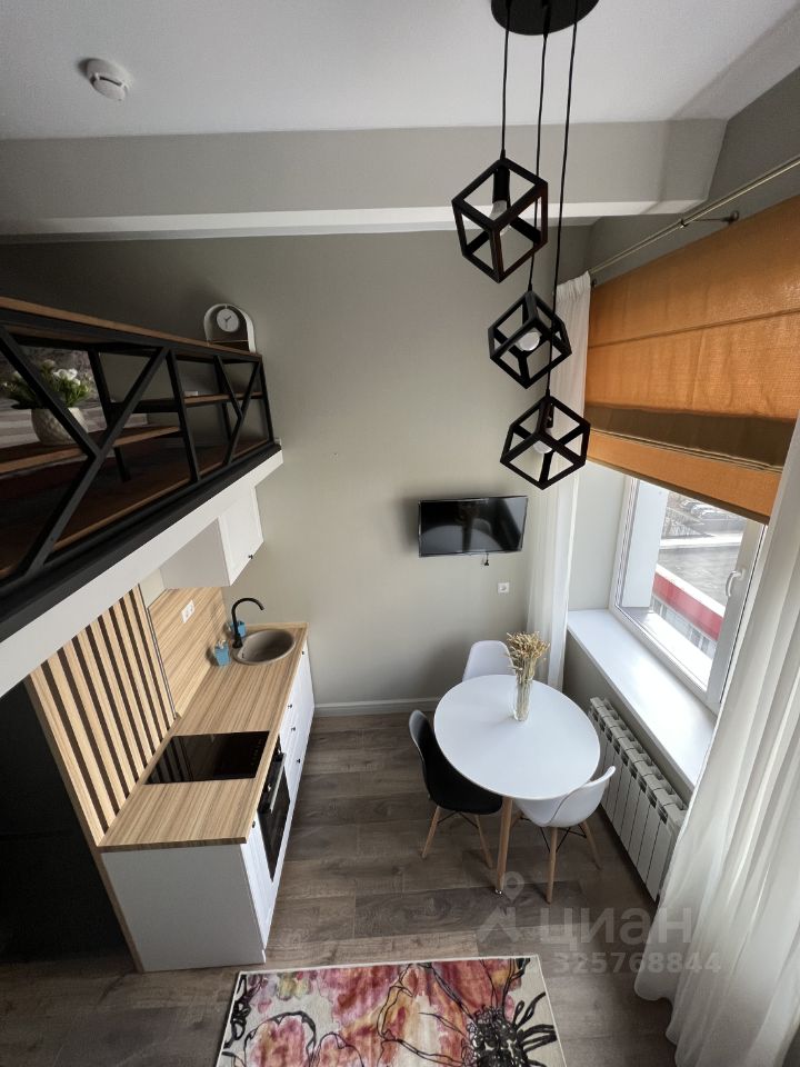 Апартаменты с дизайнерским ремонтом, продуманным до мелочей. Кухонная зона площадью 3 кв. м оборудована всем необходимым для комфортной готовки. Студия полностью меблирована и оснащена современной техникой. Санузел совмещенный, оформлен в современном стиле. Окна выходят во двор, поэтому в апартаментах тихо и уютно.