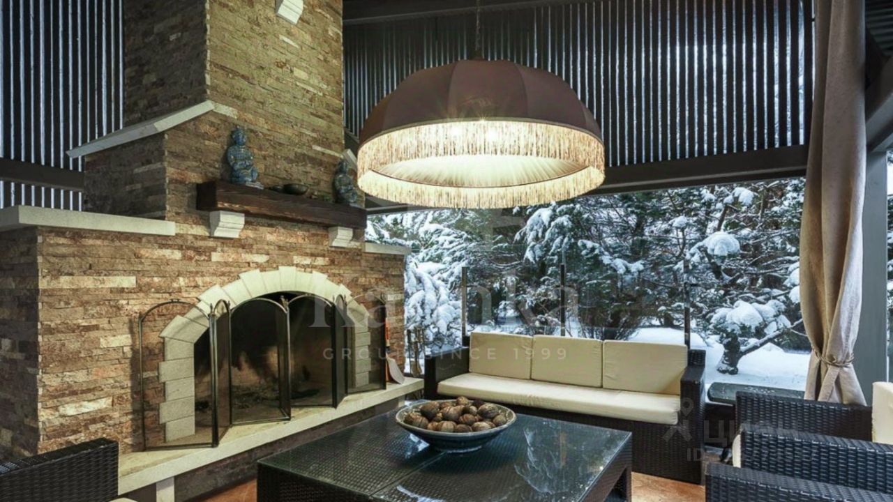 На участке: 200 деревьев крупномеров, дорожки, уличное освещение, скамейки, шезлонги Дом персонала 50кв м с кухней и с/у, гараж на 2 больших авто, с чердаком и мансардными окнами, беседка, зона для барбекю, уличный SPA ''Sundance'' (США), шатер, автополив, генератор (ведущие производители).