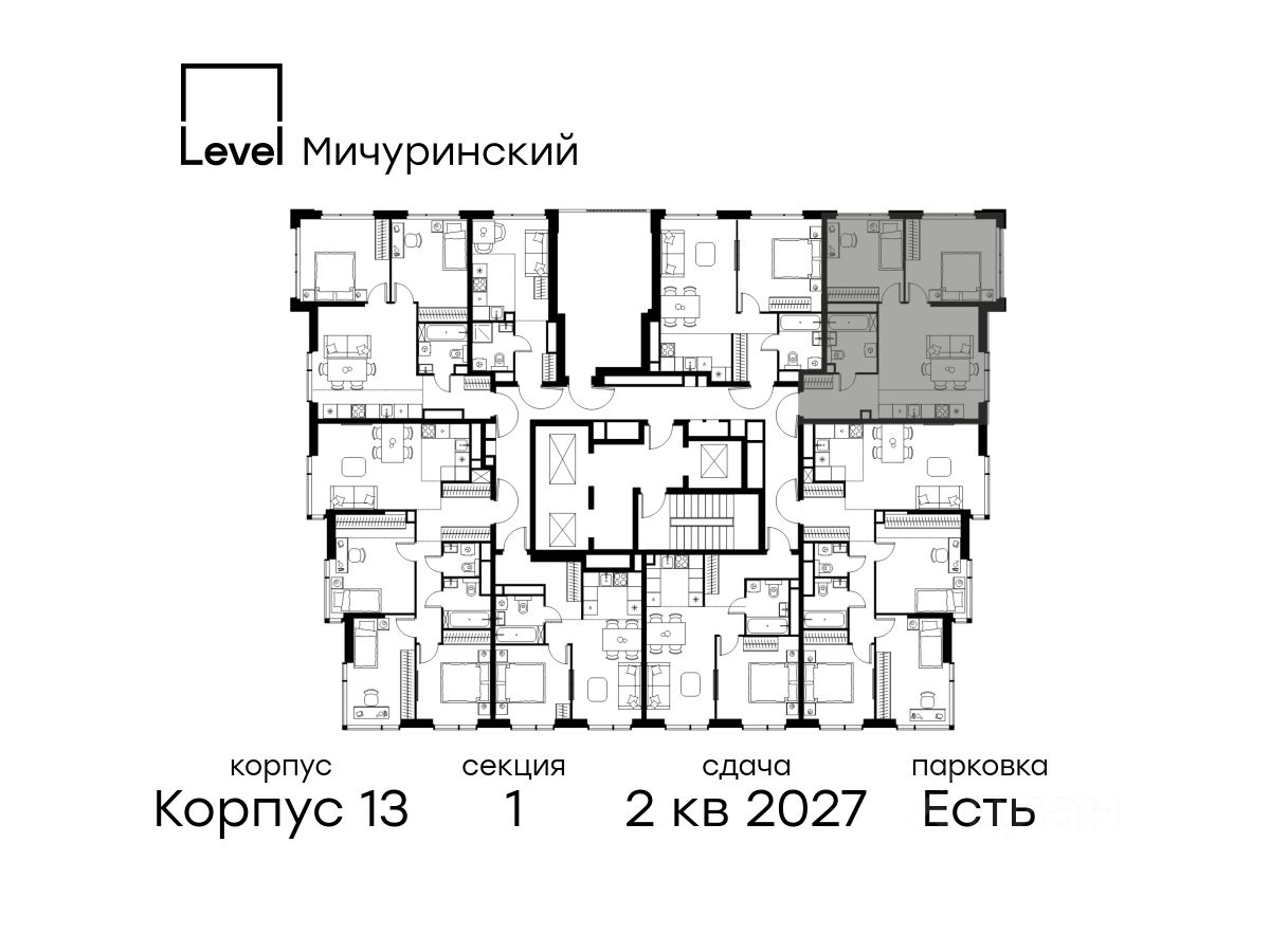 В жилом квартале, расположенном на границе с природным заказником ''Долина реки Очаковки'', продаётся 3-комнатная квартира площадью 56.70 кв.м без отделки. Квартира расположена на 25 этаже 31-этажного корпуса 13 в жилом комплексе бизнес-класса Level Мичуринский (компания Level Group/Левел групп).