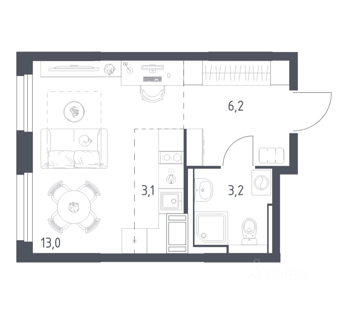 Строим кварталы для жизни с заботой о будущем. Предлагается студия комфорт-класса площадью 25,1 кв.м в корпусе 4.1 на 7-м этаже, в жилом комплексе ''Мытищи Парк''.