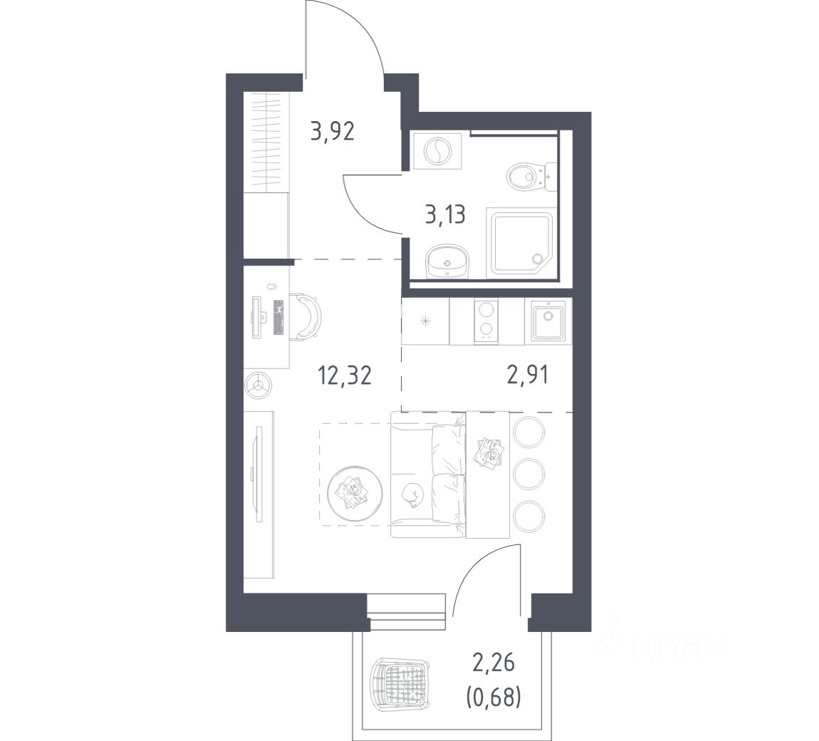 Строим кварталы для жизни с заботой о будущем. Предлагается студия комфорт-класса площадью 22,96 кв.м в корпусе 3.2 на 3-м этаже, в жилом комплексе ''Егорово Парк''.