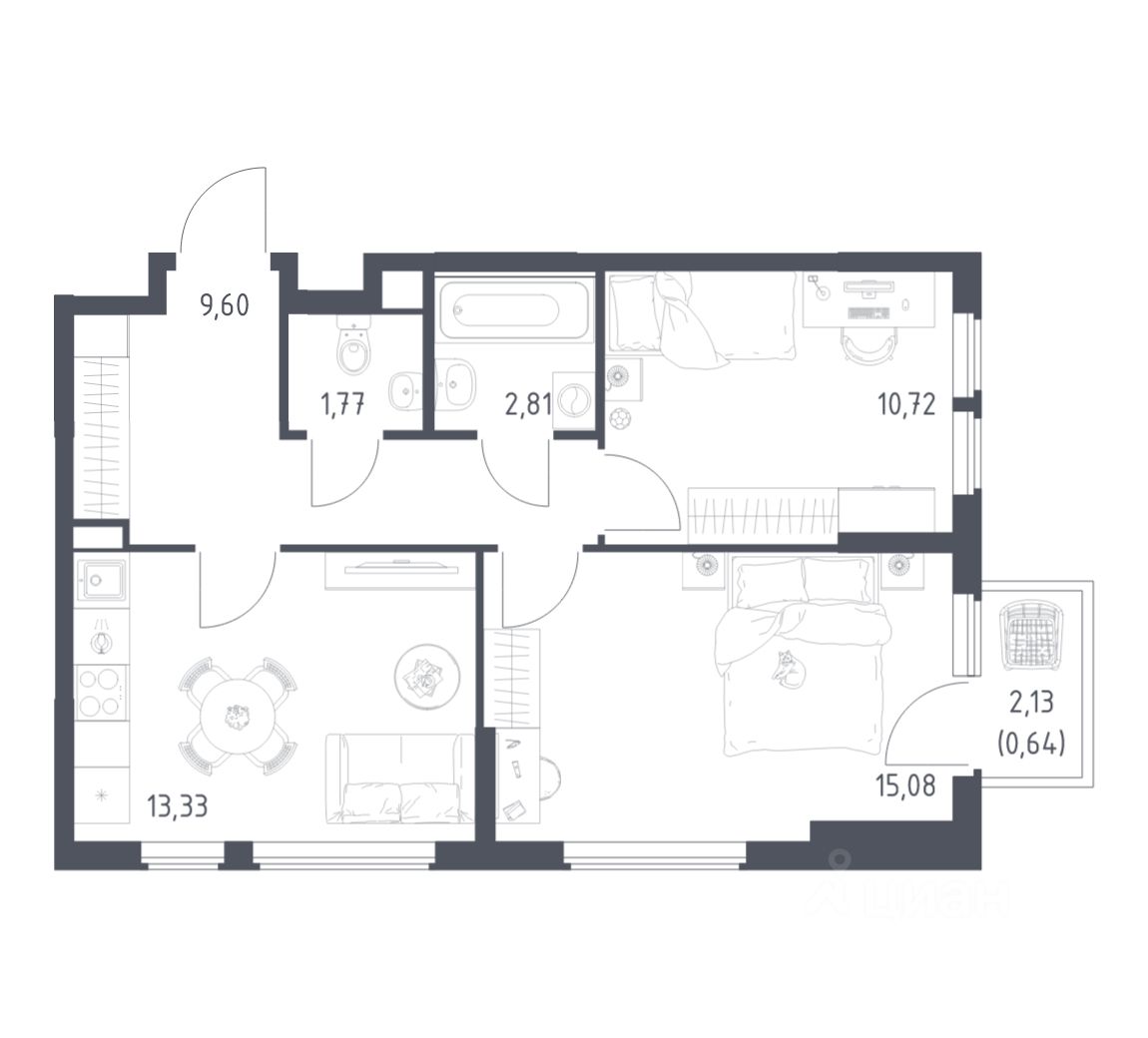 Строим кварталы для жизни с заботой о будущем. Предлагается 2-комнатная квартира комфорт-класса площадью 53,95 кв.м в корпусе 22 на 6-м этаже, в жилом комплексе ''Остафьево''.