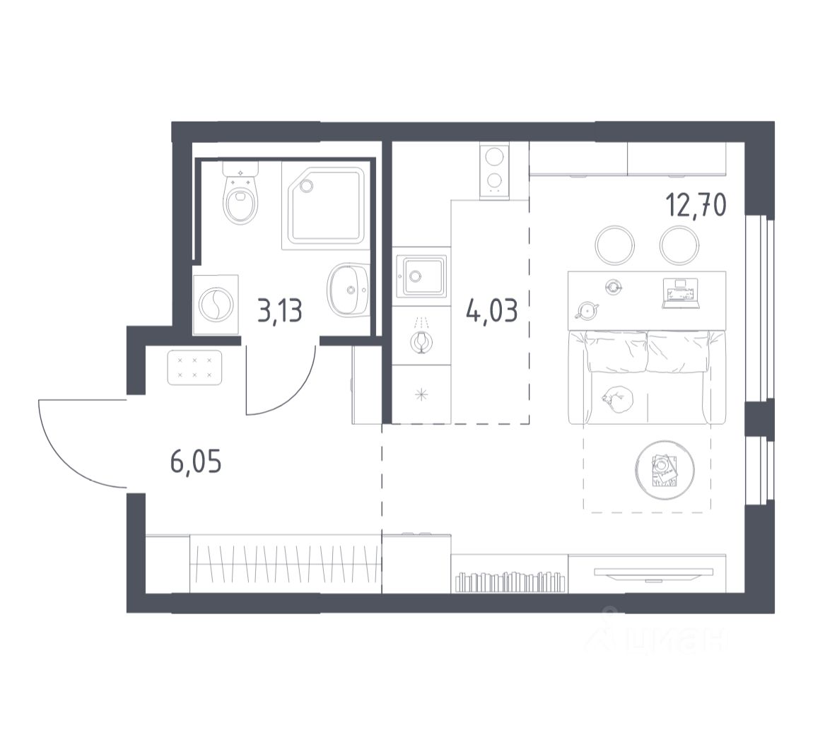 Общая площадь25,91 м2