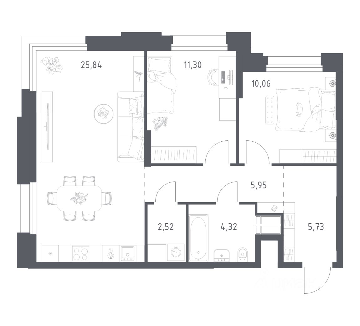 Строим кварталы для жизни с заботой о будущем. Предлагаются 2-комнатные апартаменты бизнес-класса площадью 65,72 кв.м в корпусе 2.3 на 13-м этаже, в жилом комплексе ''Тропарево Парк''.