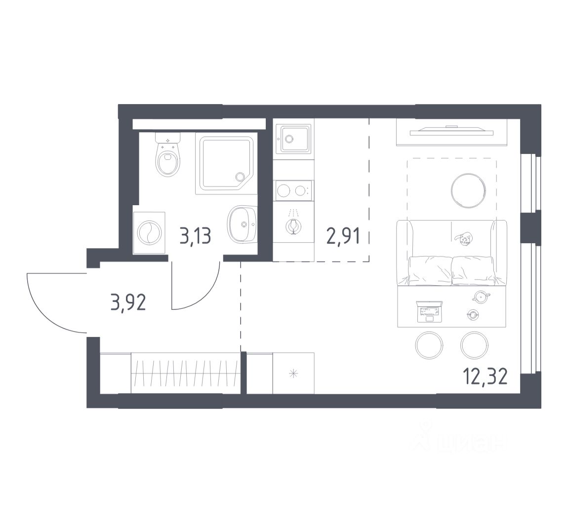 Общая площадь22,28 м2