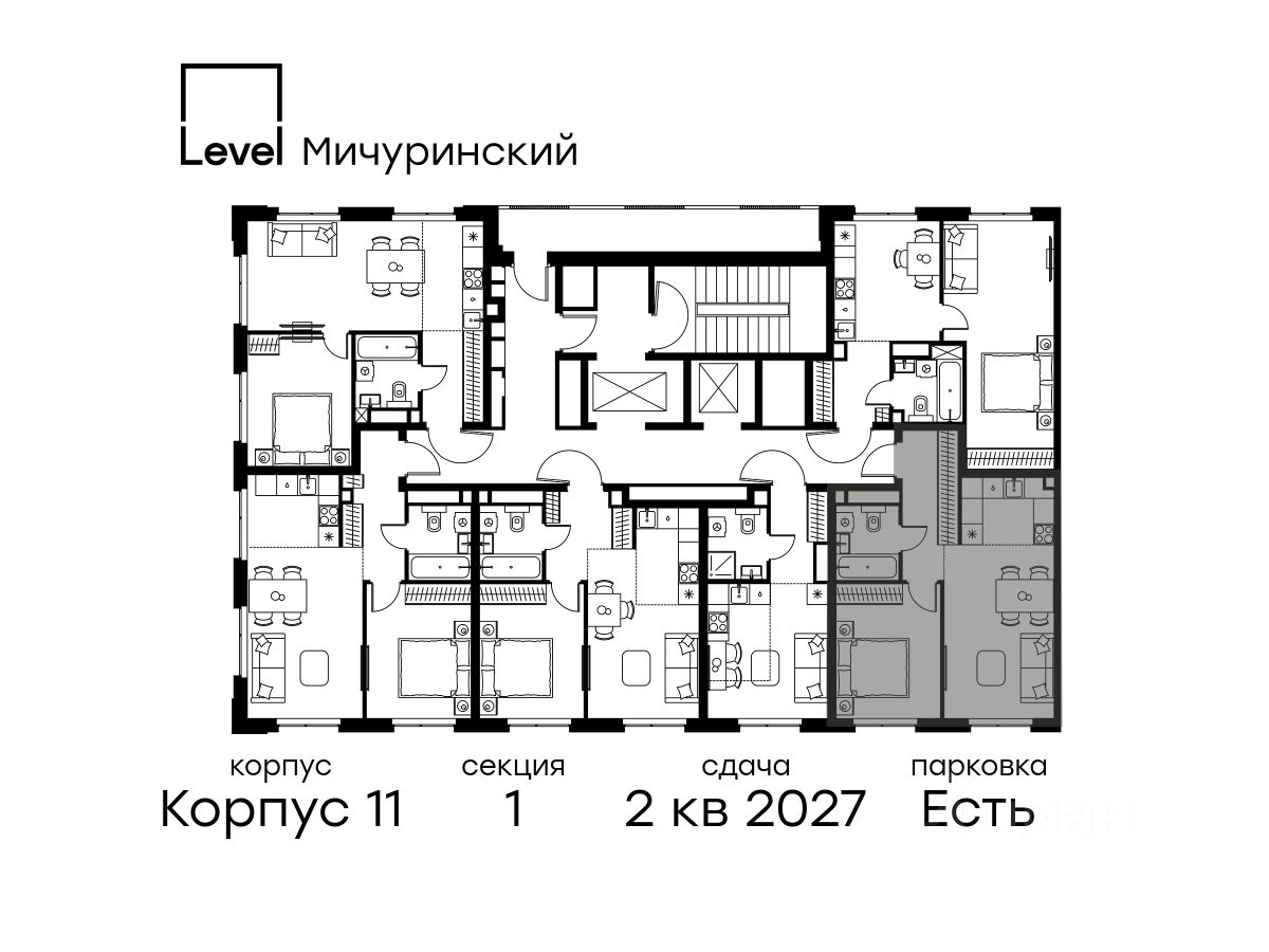 В жилом квартале, расположенном на границе с природным заказником ''Долина реки Очаковки'', продаётся 2-комнатная квартира площадью 42.80 кв.м с отделкой white box. Квартира расположена на 16 этаже 24-этажного корпуса 11 в жилом комплексе бизнес-класса Level Мичуринский (компания Level Group/Левел групп).