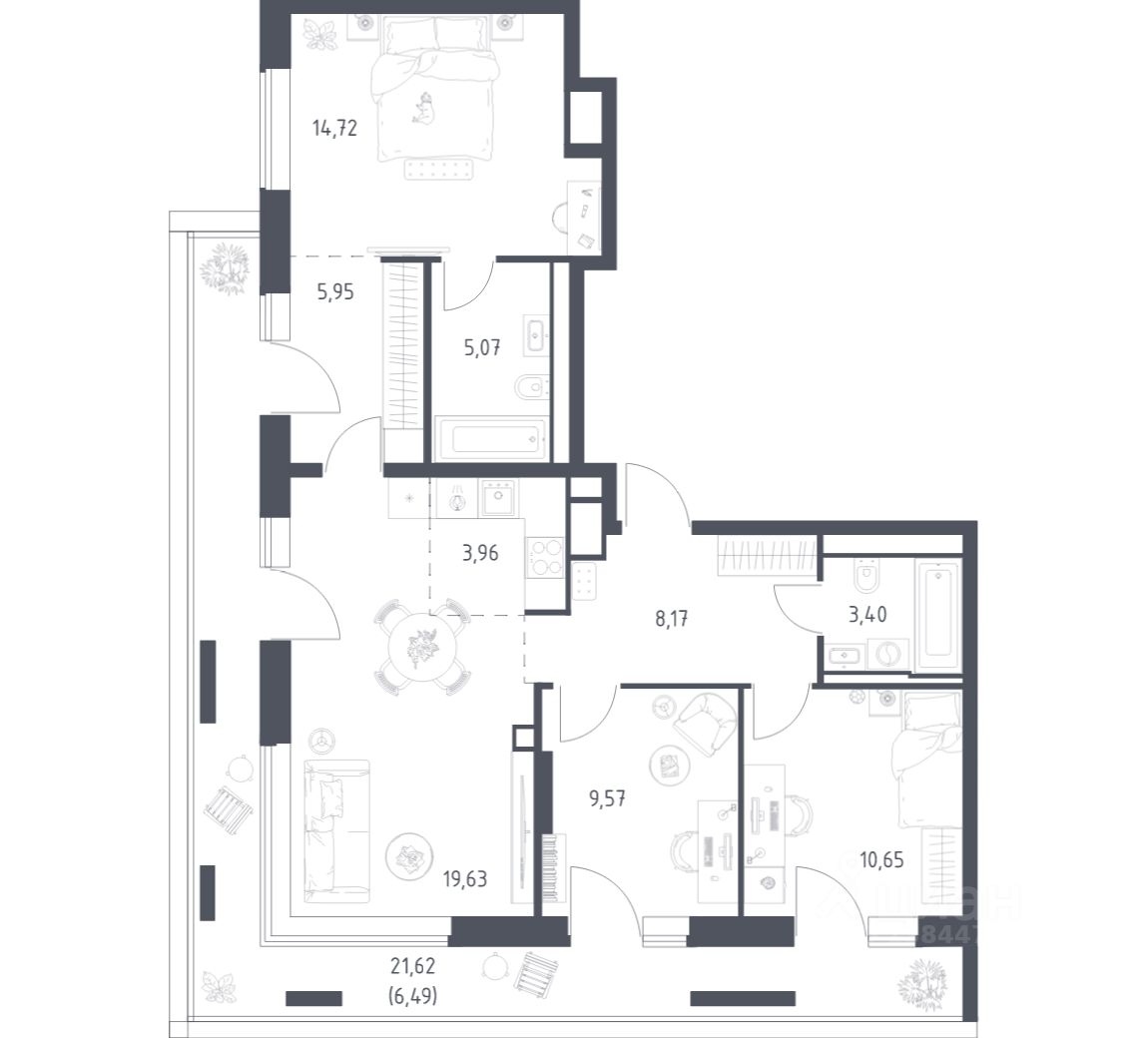 Строим кварталы для жизни с заботой о будущем. Предлагаются 3-комнатные апартаменты бизнес-класса площадью 87,61 кв.м в корпусе 2.1 на 6-м этаже, в жилом комплексе ''Верейская 41''.