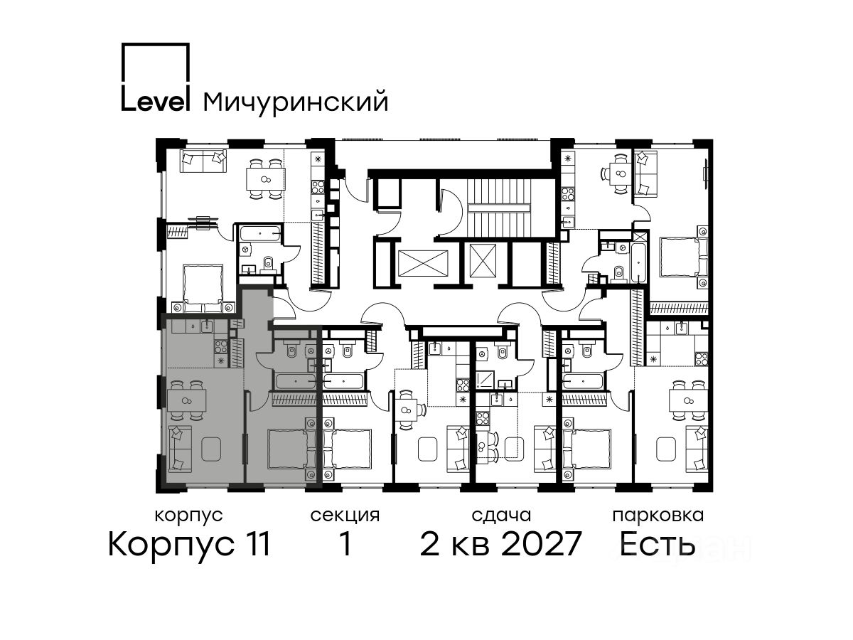 В жилом квартале, расположенном на границе с природным заказником ''Долина реки Очаковки'', продаётся 2-комнатная квартира площадью 43.40 кв.м с отделкой white box. Квартира расположена на 24 этаже 24-этажного корпуса 11 в жилом комплексе бизнес-класса Level Мичуринский (компания Level Group/Левел групп).