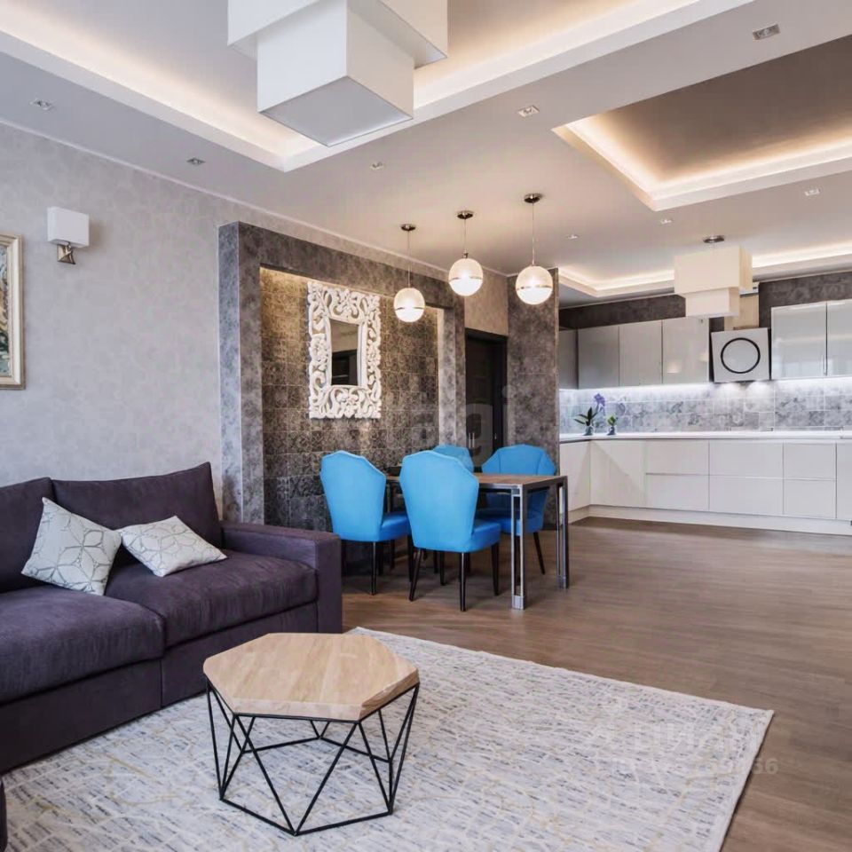 Объект отличается продуманной для комфортной жизни планировкой: три изолированные комнаты, большая кухня-гостиная, два санузла и три гардеробные. Отделка и инженерные системы выполнены качественно, часть мебели остается. Кухня-гостиная площадью 37,5 м2: диван Reid Chaise Sectional (Россия), торшер, бра - Flos, коллекция KTribe Soft (Италия), люстра - Chiaro (Германия) Детская площадью 20,6 м2: паркет - Coswick (Беларусь), обои Sandberg (Швеция), кровать - Dream Land (Россия) Спальня площадью 16,3 м2: обои - Harlequin (Англия), Eco WallPaper, коллекция White Light (Швеция), люстра - Ideal LuX (Италия) Ванная площадью 7м2: плитка - FAP Ceramiche, коллекция Evoque (Италия), смесители - Hansgrohe