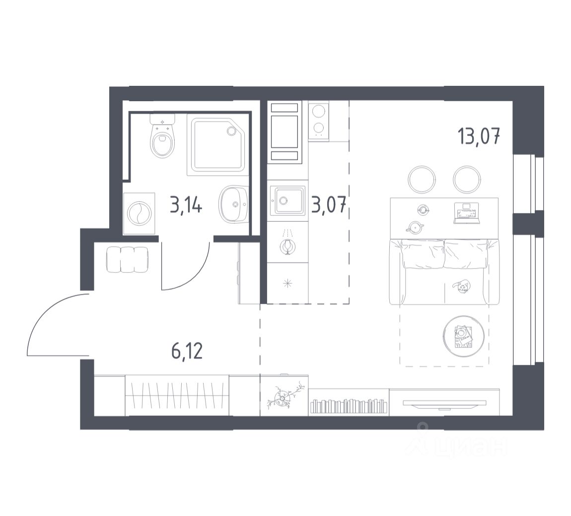 Строим кварталы для жизни с заботой о будущем. Предлагается студия комфорт-класса площадью 25,4 кв.м в корпусе 6.3 на 16-м этаже, в жилом комплексе ''Томилино Парк''.