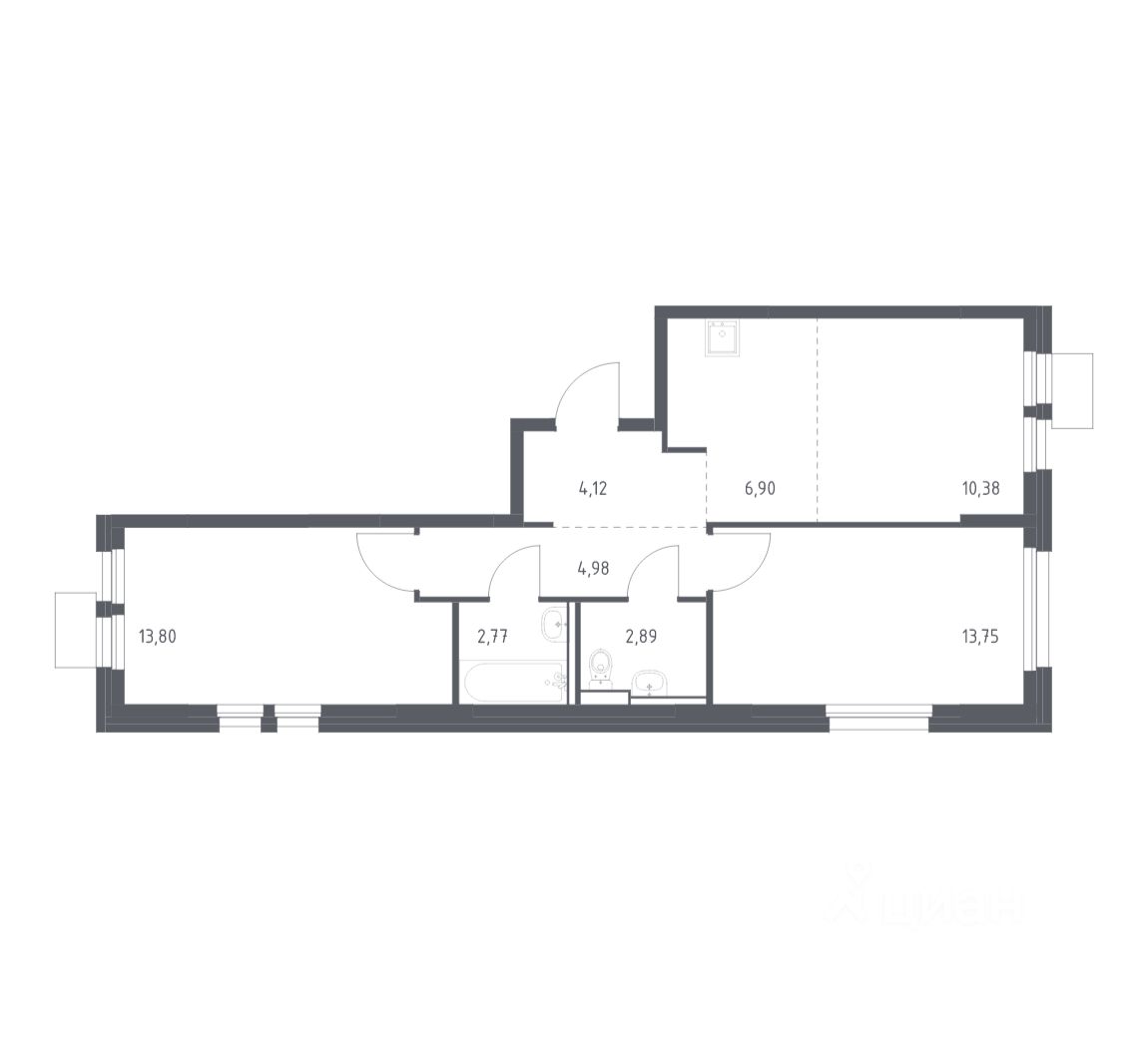 В продаже 2-комнатная квартира в корпусе 4 ЖК 'Квартал Ивакино'. Квартира располагается на 6 этаже, общая площадь 59.59 м2.
