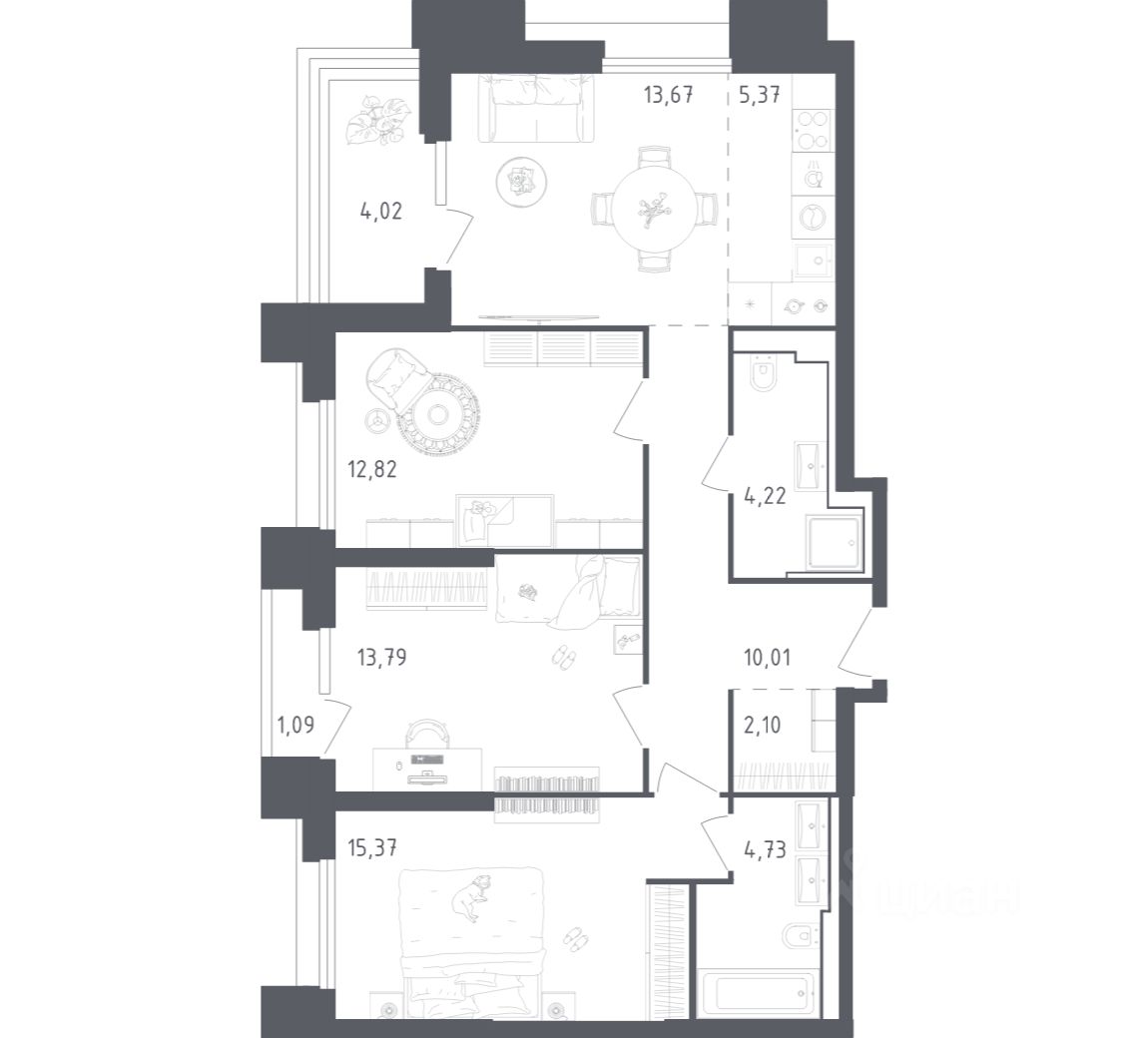 Строим кварталы для жизни с заботой о будущем. Предлагаются 3-комнатные апартаменты бизнес-класса площадью 87,19 кв.м в корпусе 20 на 2-м этаже, в жилом комплексе ''Sky Sputnik''.