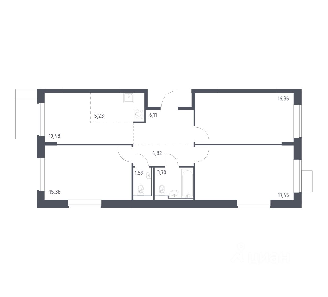 Строим кварталы для жизни с заботой о будущем. Предлагается 3-комнатная квартира комфорт-класса площадью 80,62 кв.м в корпусе 4 на 14-м этаже, в жилом комплексе ''Молжаниново''.